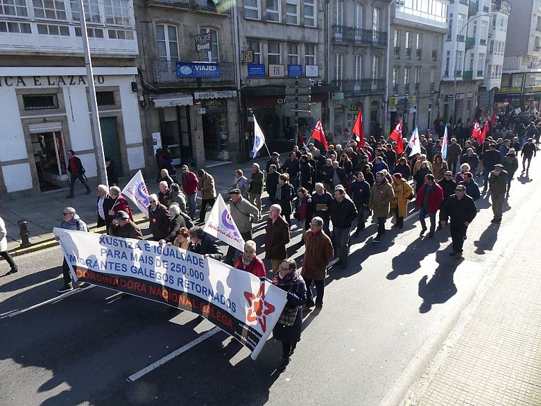 Do mesmo xeito, Esther Crespo e Xosé Lois Leirós, en representación do colectivo de Emigrantes Retornados/as, lembraron que veñen desde 2013 loitando contra a “estafa” do goberno español. “Somos 250.000 persoas que nos vimos na obriga de emigrar, traballamos duro lonxe da nosa terra e cando volvemos, é o propio goberno do Estado quen nos estafa”.
