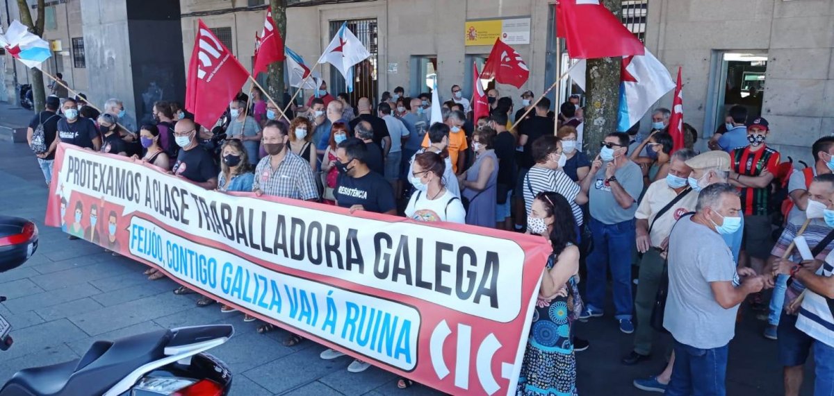 A CIG concentrouse este mércores nas sete cidades galegas en rexeitamento ao segundo acordo asinado polo Goberno español, a patronal, CCOO e UGT para a prórroga dos ERTE, mentres seguen plenamente vixentes as reformas laborais, das pensións e da negociación colectiva ou os recortes nas prestacións por desemprego e os servizos públicos. Por iso, a CIG reitera que este acordo, plasmado no Real Decreto Lei 24/2020 que hoxe se convalidou no Congreso dos Deputados/as, supón afondar no abuso patronal e un enorme prexuízo para o conxunto dos traballadores e das traballadoras.