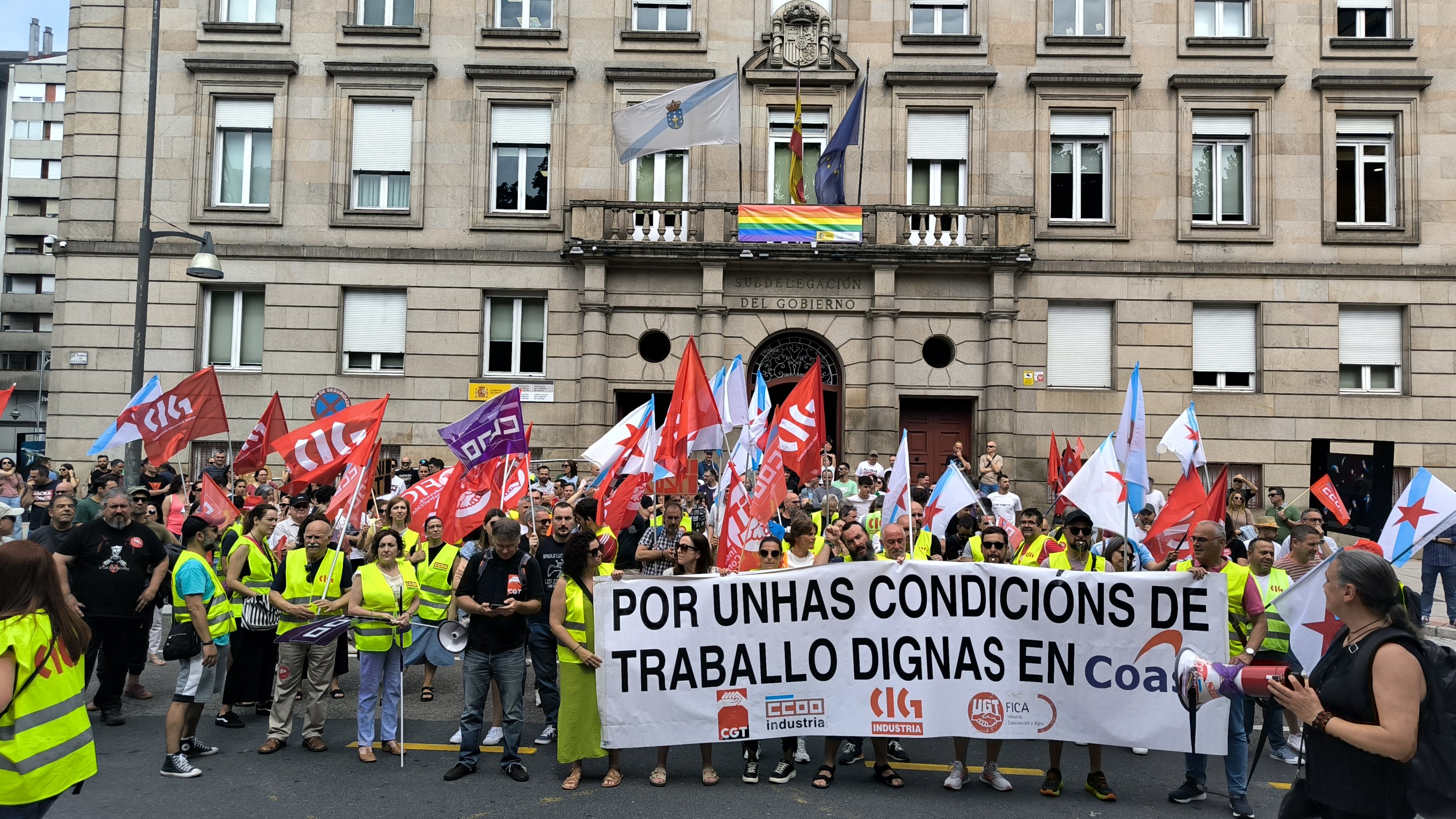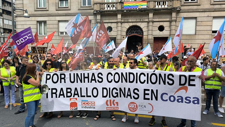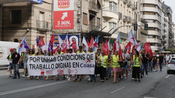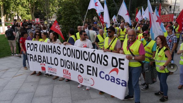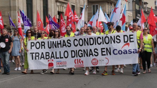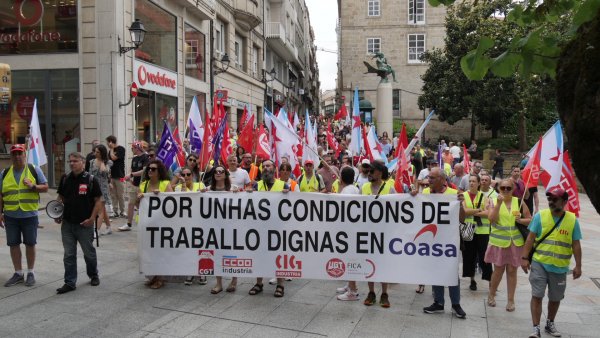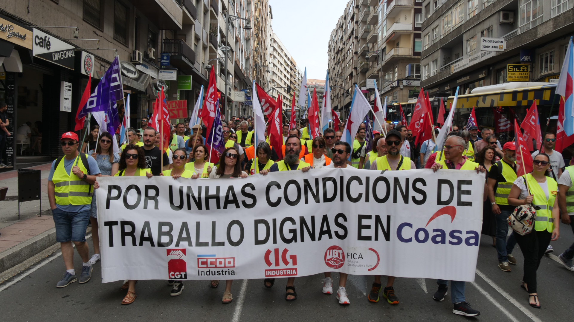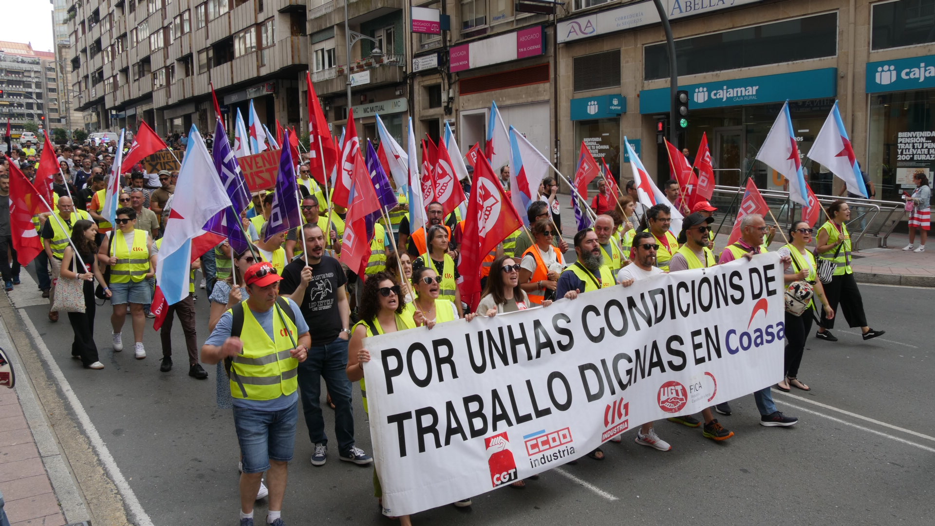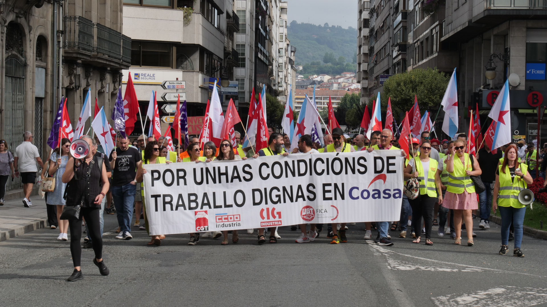 Varios centos de persoas participaron hoxe na manifestación convocada polo cadro de persoal de Coasa, compañía do sector da aeronáutica con sede en Ourense, coincidindo cunha nova xornada de folga para reclamar melloras laborais.