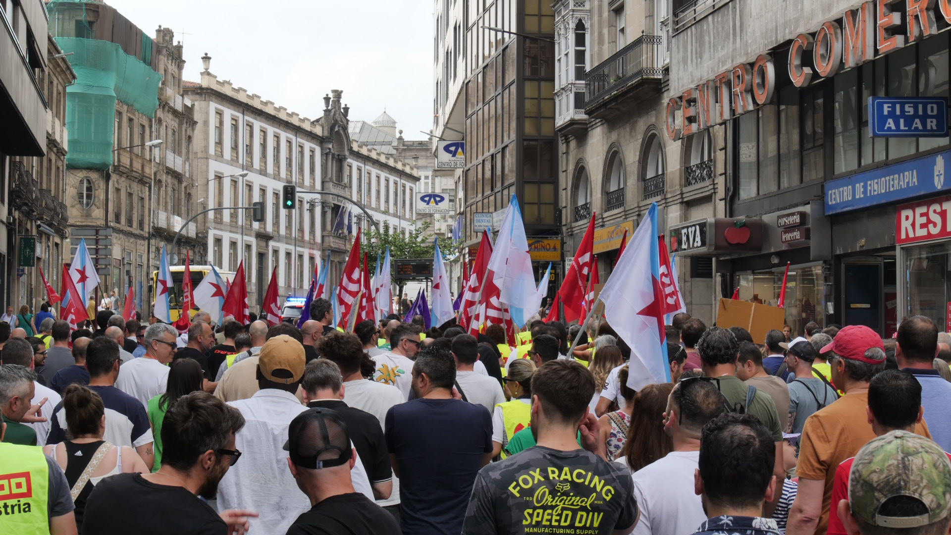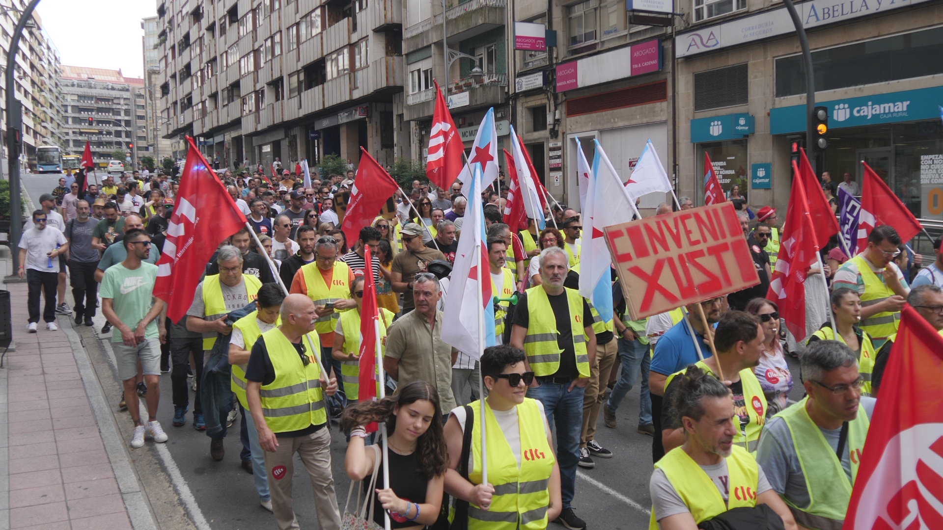 A marcha arrincou pasadas as 10:30 horas do local dos sindicatos, no Parque de San Lázaro, e rematou arredor do mediodía diante da Subdelegación do Goberno español tras percorrer as principais rúas do centro da cidade ao berro de “Coasa solución, dirección dimisión” e “Así, así, nin un paso atrás, esta batalla ímola gañar”.