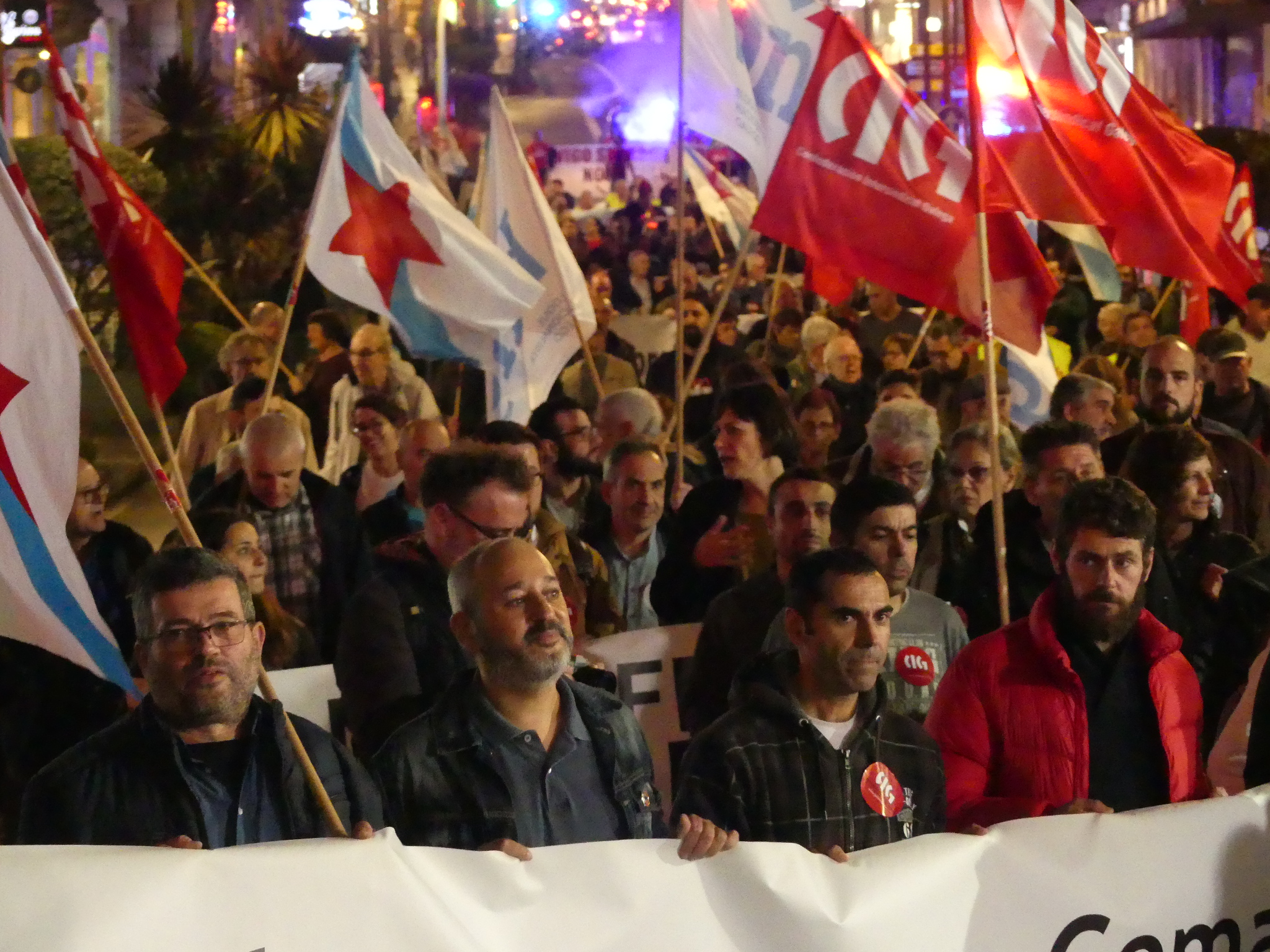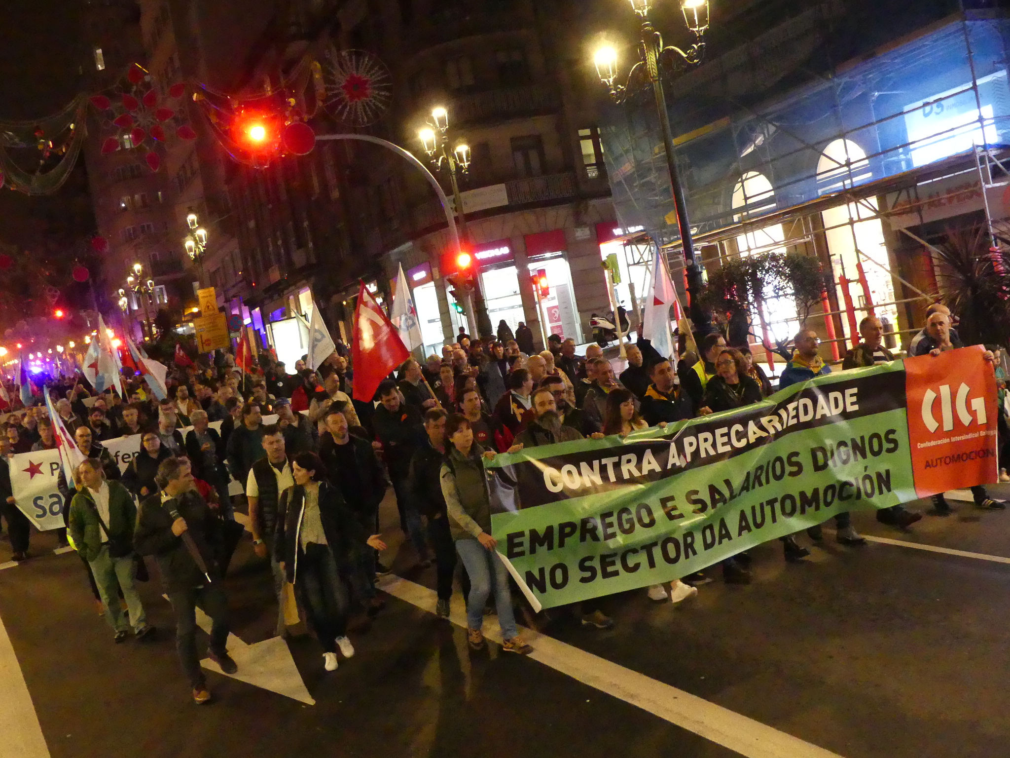Durante o percorrido escoitáronse berros de “Xunta, escoita, Vigo está en loita”, “Naval solución”, “Emprego digno na automoción”, “Futuro industrial para a comarca” ou “Servizos públicos de calidade”.