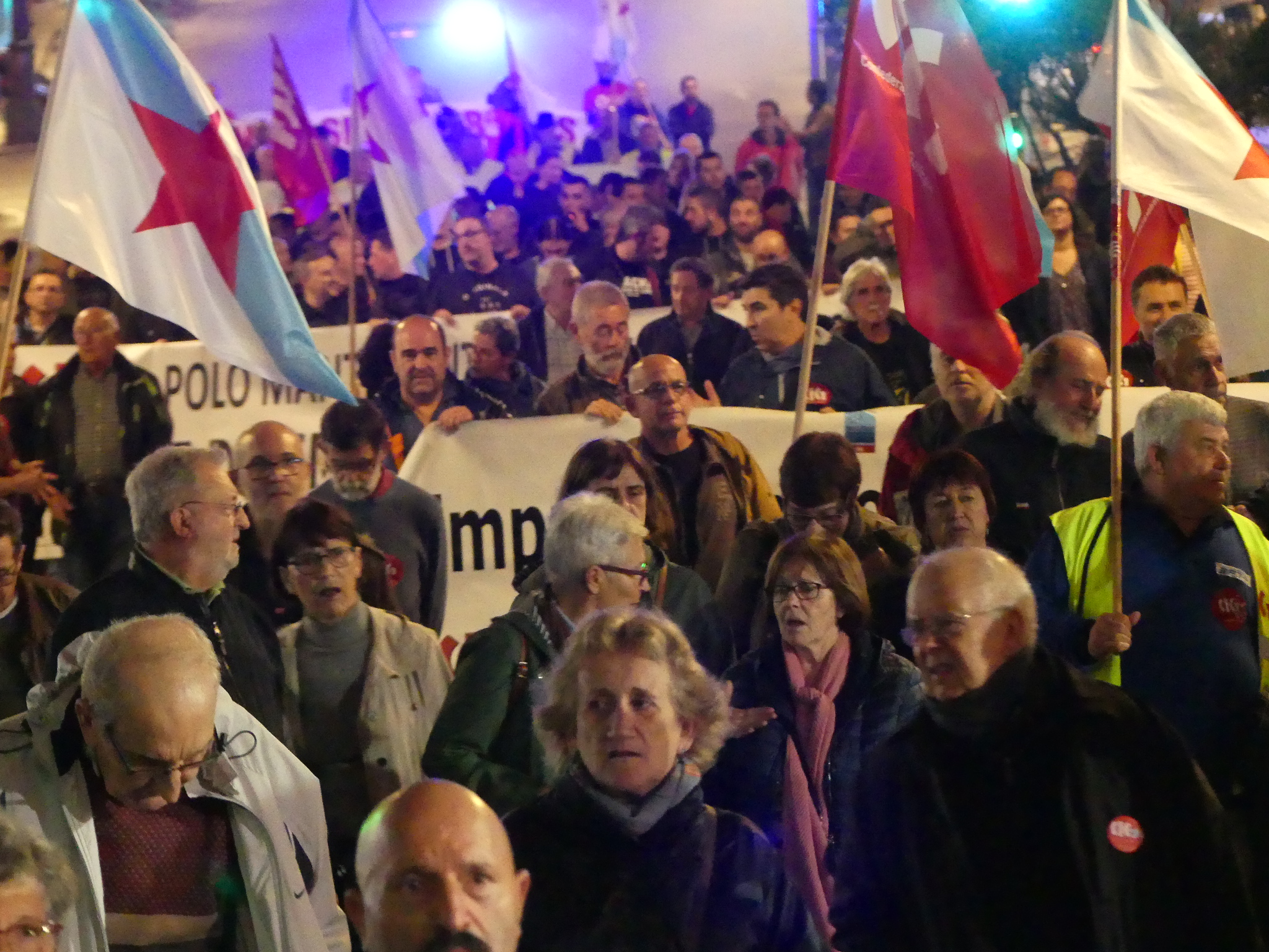 A marcha, na que participou o secretario xeral da CIG, Paulo Carril, arrincou baixo a choiva dende Vía Norte ás oito da tarde e rematou unha hora despous no farol de Urzaiz, onde Gonçalves dirixiulles unhas palabras ás persoas asistentes.