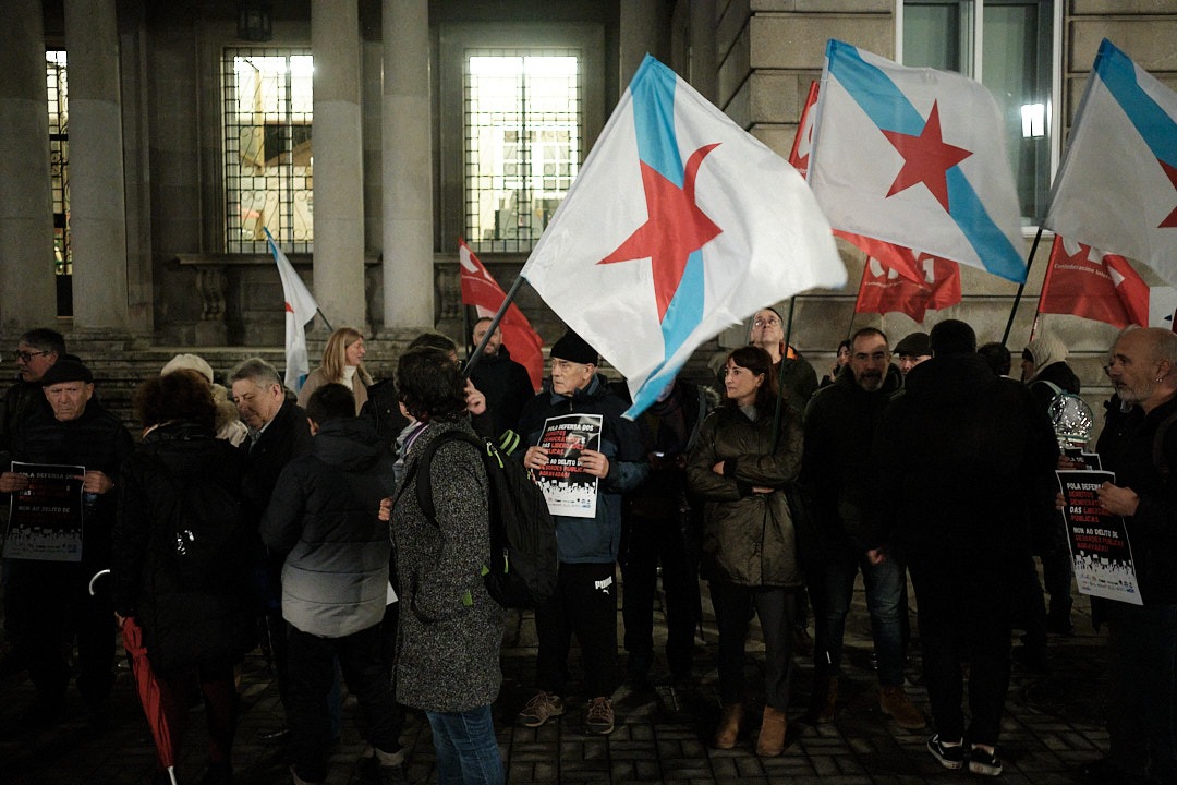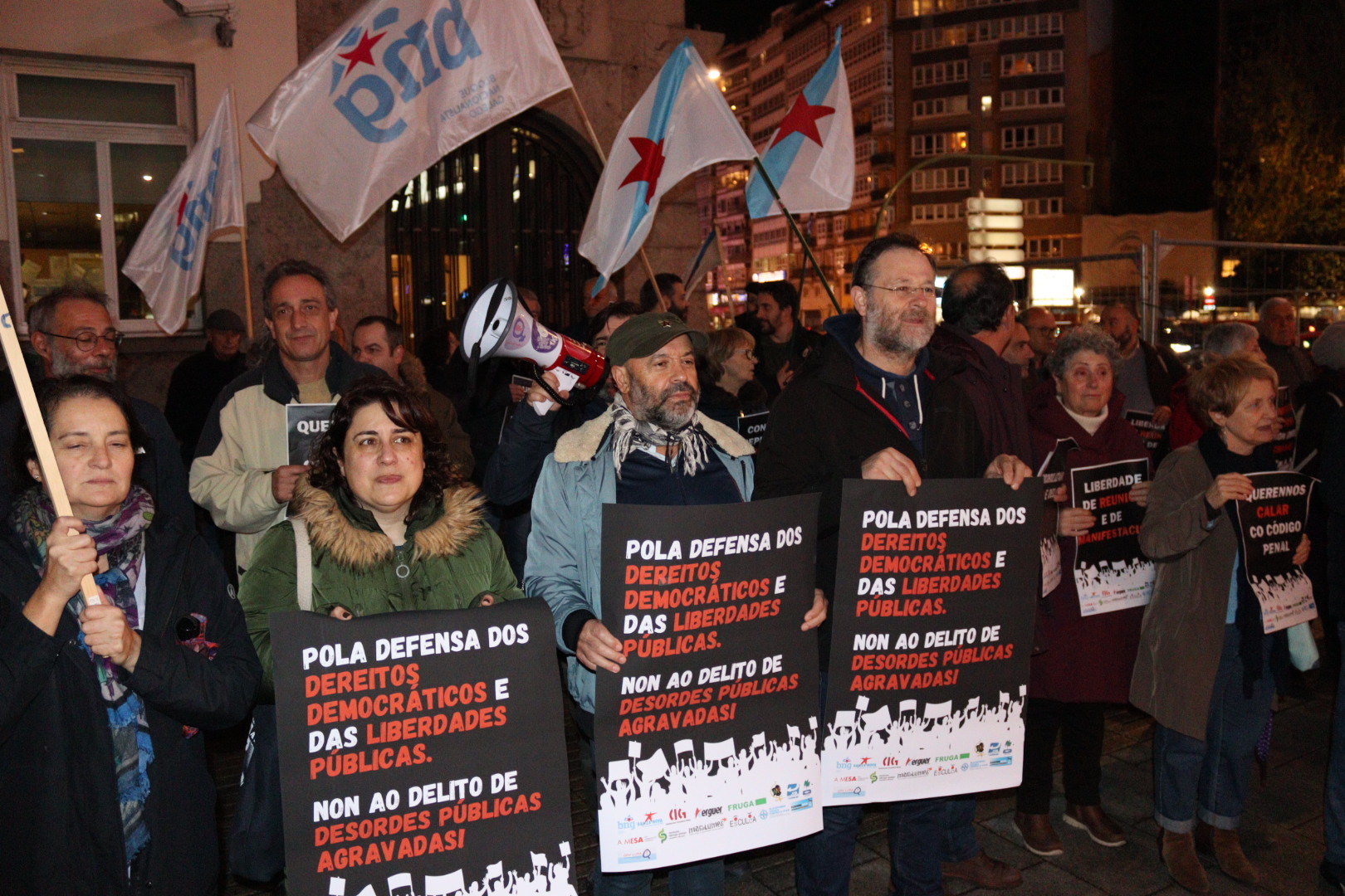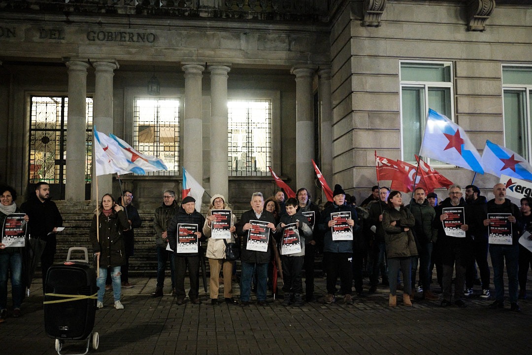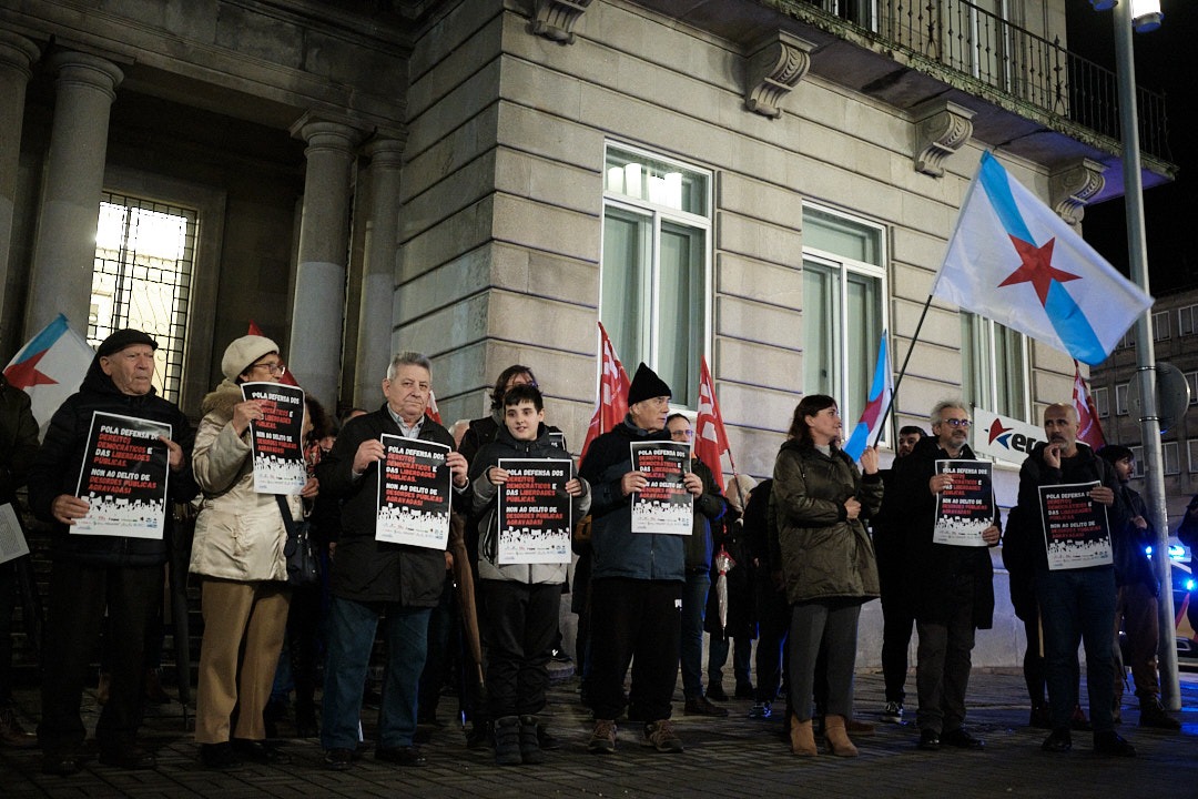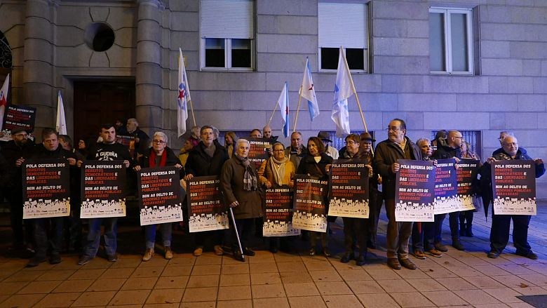 Centos de persoas concentráronse diante da Delegación do Goberno, na Coruña; das Subdelegacións do Goberno en Lugo, Ourense e Pontevedra; na praza Amada García, en Ferrol, diante do Marco, en Vigo na praza Roxa de Compostela, para manifestar o seu rexeitamento á criminalización da protesta social, co endurecemento do delito de desordes públicas e en defensa dos dereitos democráticos e das liberdades públicas.
