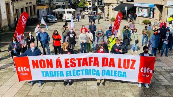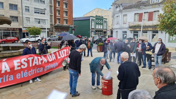 A CIG mobilizouse este domingo en 24 concellos en contra da estafa da luz e para reclamar a recuperación das centrais hidroeléctricas, a posta en marcha dunha tarifa eléctrica galega e que se recoñeza a enerxía como un dereito universal. Nesta segunda xeira de protestas da CIG contra a alza imparábel do prezo da luz e a inacción dos gobernos, fíxose unha queima simbólica de facturas como acto de desagravio, máis tamén de reivindicación contra unhas eléctricas que, mentres acumulan beneficios multimillonarios, abocan a clase traballadora á pobreza enerxética.
