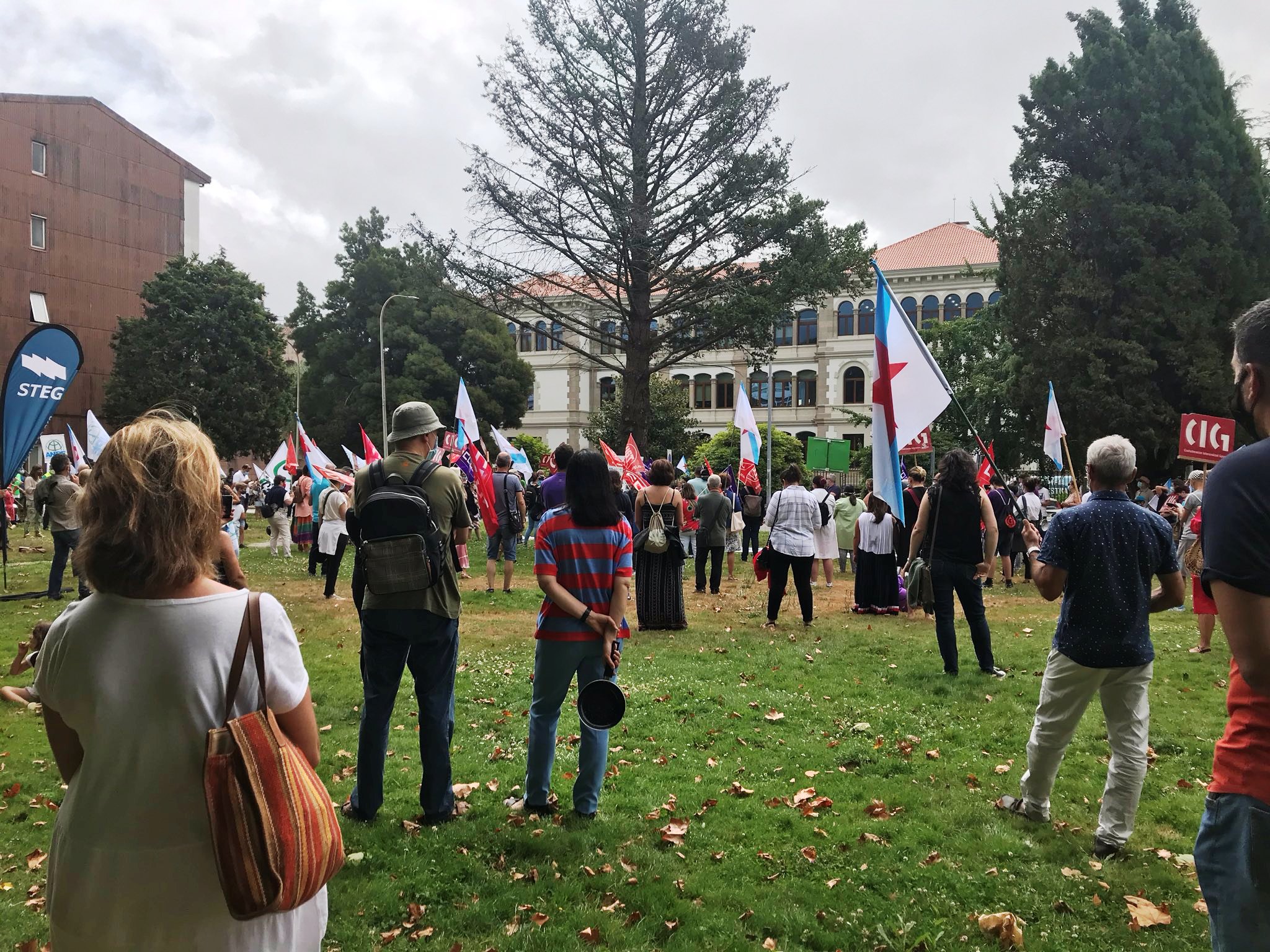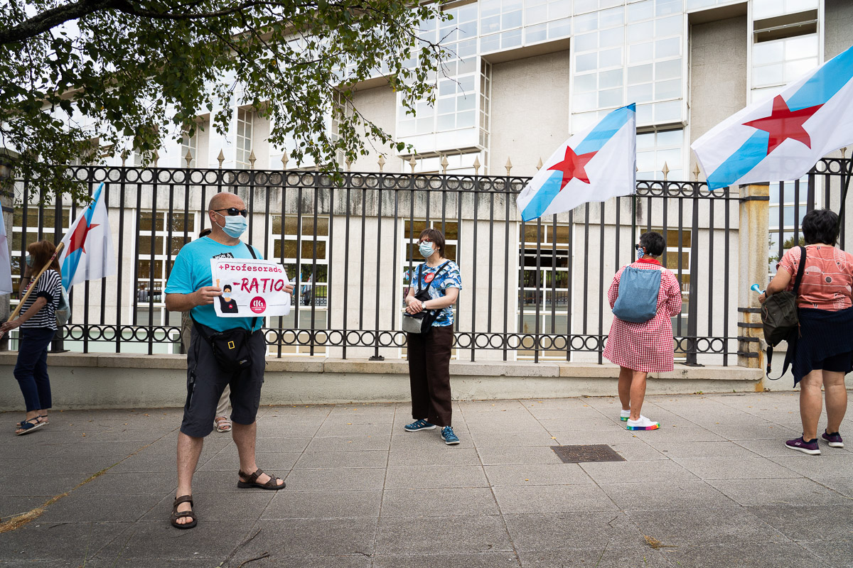 Durante a concentración, o secretario nacional da CIG-Ensino, Suso Bermello sinalou “a contradición e a irresponsabilidade que supón que a Xunta acabe de sacar unha recomendación na que limita o número de persoas en reunións privadas a 25 mentres que nunha aula, de Infantil e Primaria, haberá en moitos casos 26, dado que os mestres e mestras tamén contan, aínda que sabemos que para a Consellaría non. E xa non digamos en Secundaria e Bacharaleto no que a ratio máxima legal está marcada entre 30 e 35 estudantes por aula”. “O que se lexisla para o resto da poboación non vale para os centros de ensino que xa sabemos que estamos á marxe das preocupacións sanitarias da Xunta do PP”, apuntou Bermello.