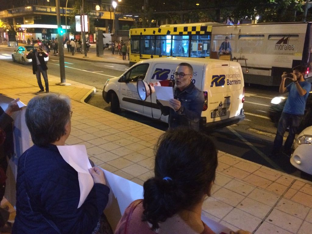 Centos de persoas saíron esta tarde ás rúas de Galiza para solidarizase co pobo catalán neste día histórico no que o Parlament declaraba a constitución dunha República catalá como estado independente, soberano, democrático e social. Ao tempo, o Senado aprobaba a aplicación do artigo 155 da constitución, negando así o dereito a decidir, e habilitando o goberno de Rajoy para perpetrar un verdadeiro golpe de estado á vontade do pobo catalán exercida nas urnas.