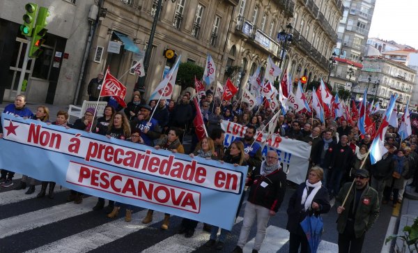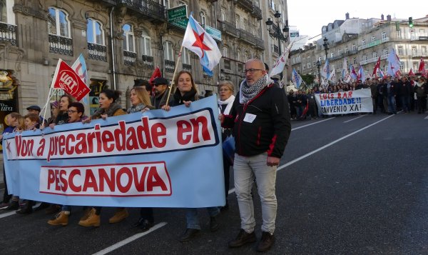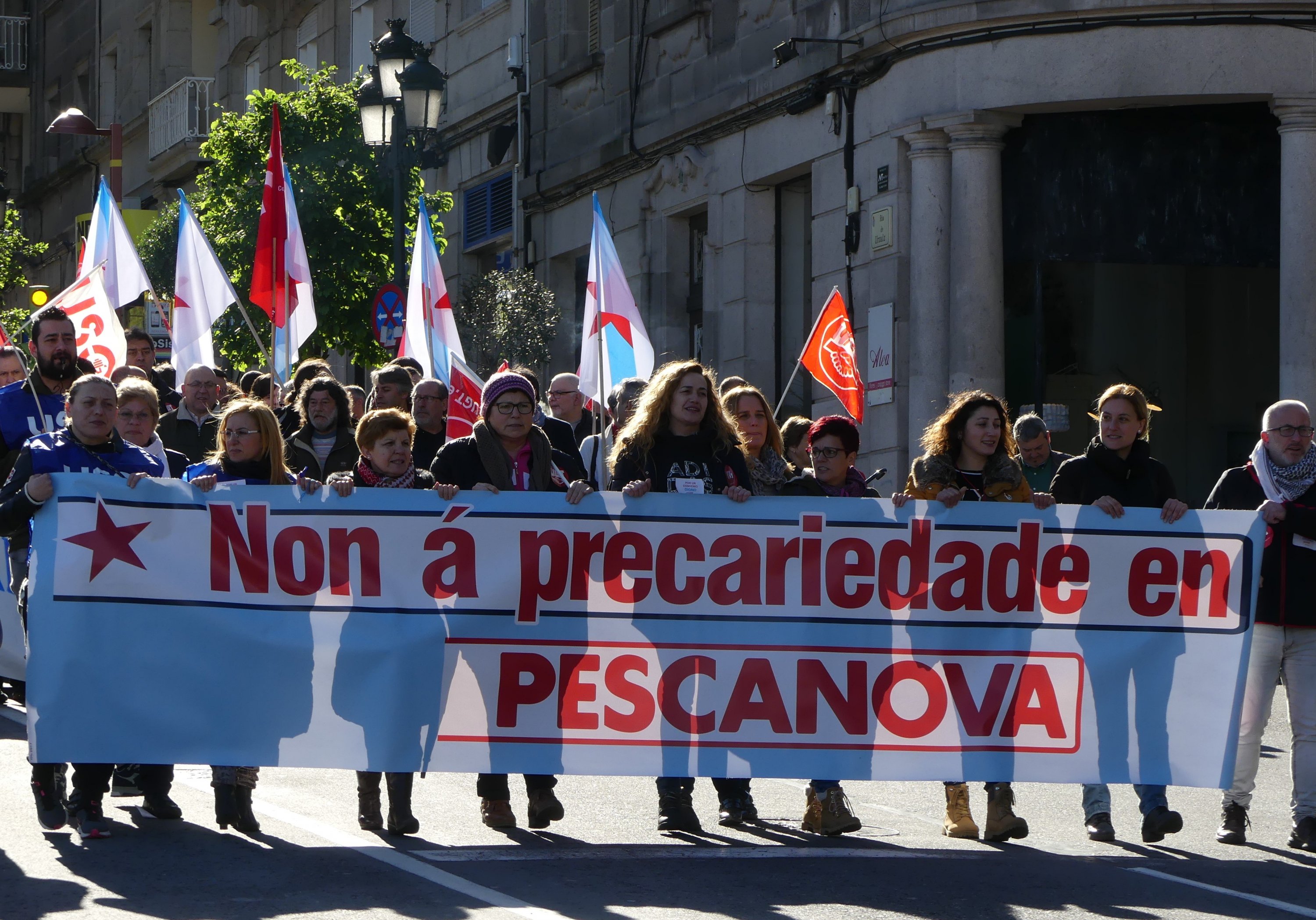 Ademais dos berros de apoio a este traballador, durante a manifestación coreáronse consignas como “Pescanova, escoita, estamos en loita”, “Este convenio ímolo gañar” ou “Convenios dignos en Pescanova”. Ao remate da marcha tomou a palabra a presidenta do comité de empresa, Lari Martínez, da CIG, quen agradeceu o apoio de todos/as os presentes e lembrou que o cadro de persoal está preparado para afrontar un conflito laboral “que vai ser moi longo”.