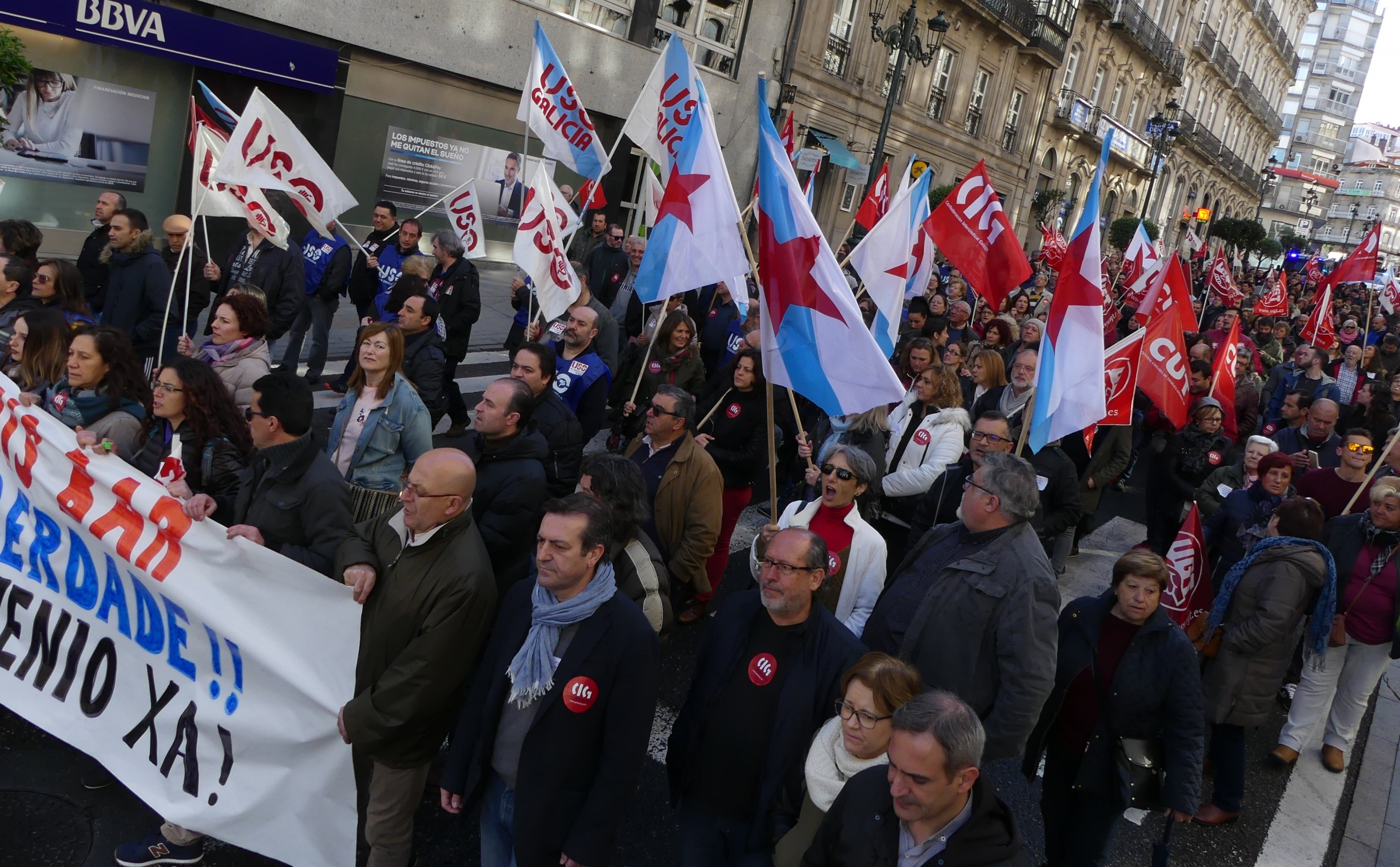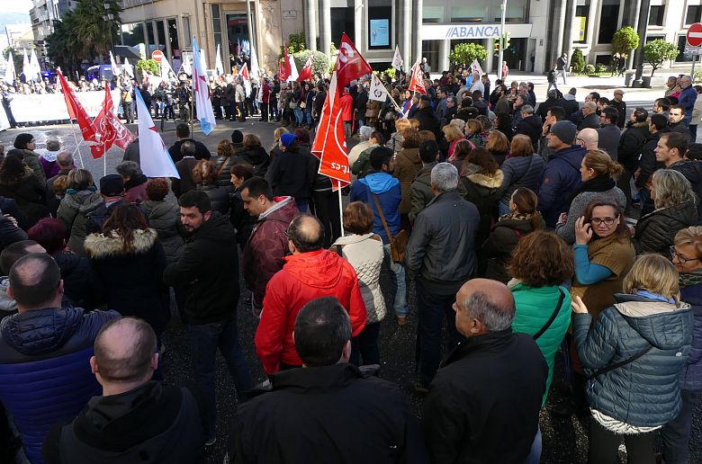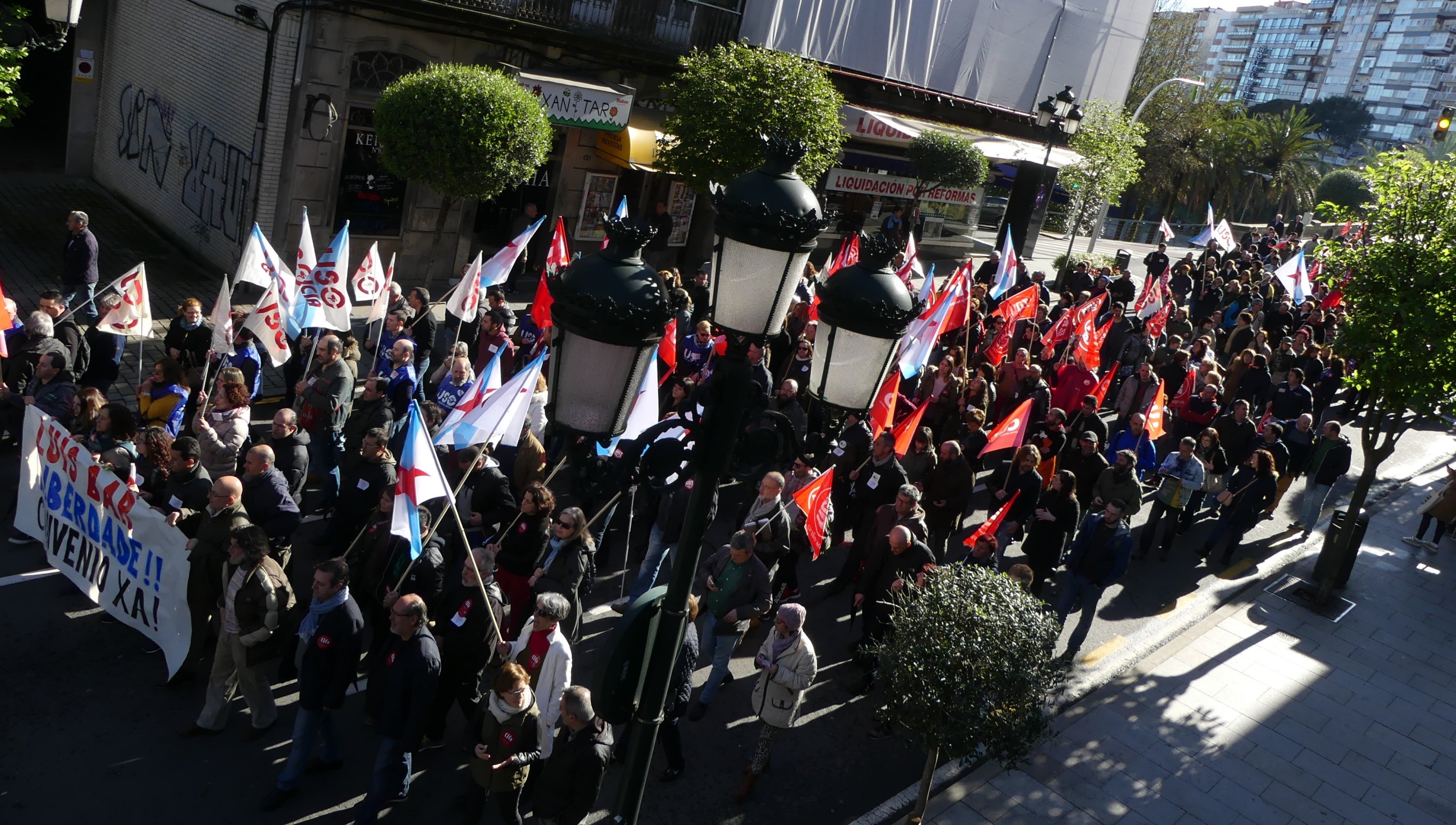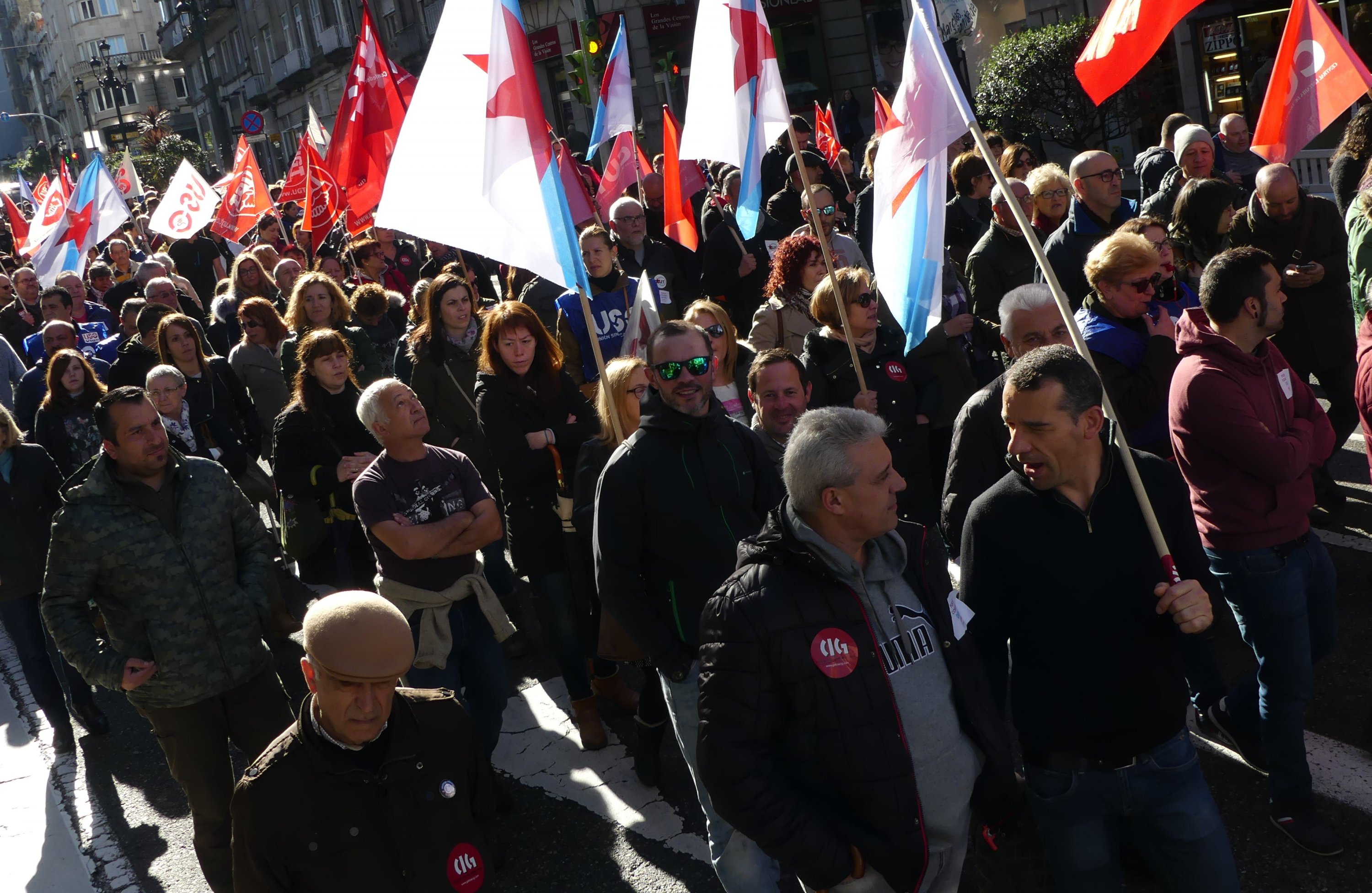 Unha concorrida marcha percorreu as rúas da cidade dende Vía Norte até o cruce das rúas Colón e García Barbón, zona onde se ubican as sedes de varias sucursais bancarias que son sinaladas polos traballadores/as de Nueva Pescanova como responsábeis da situación na que se atopa a empresa. A manifestación estivo custodiada en todo momento por un importante dispositivo policial, ao igual que o numeroso piquete informativo que se concentrou ás portas da factoría de Chapela dende as 5.30 horas.