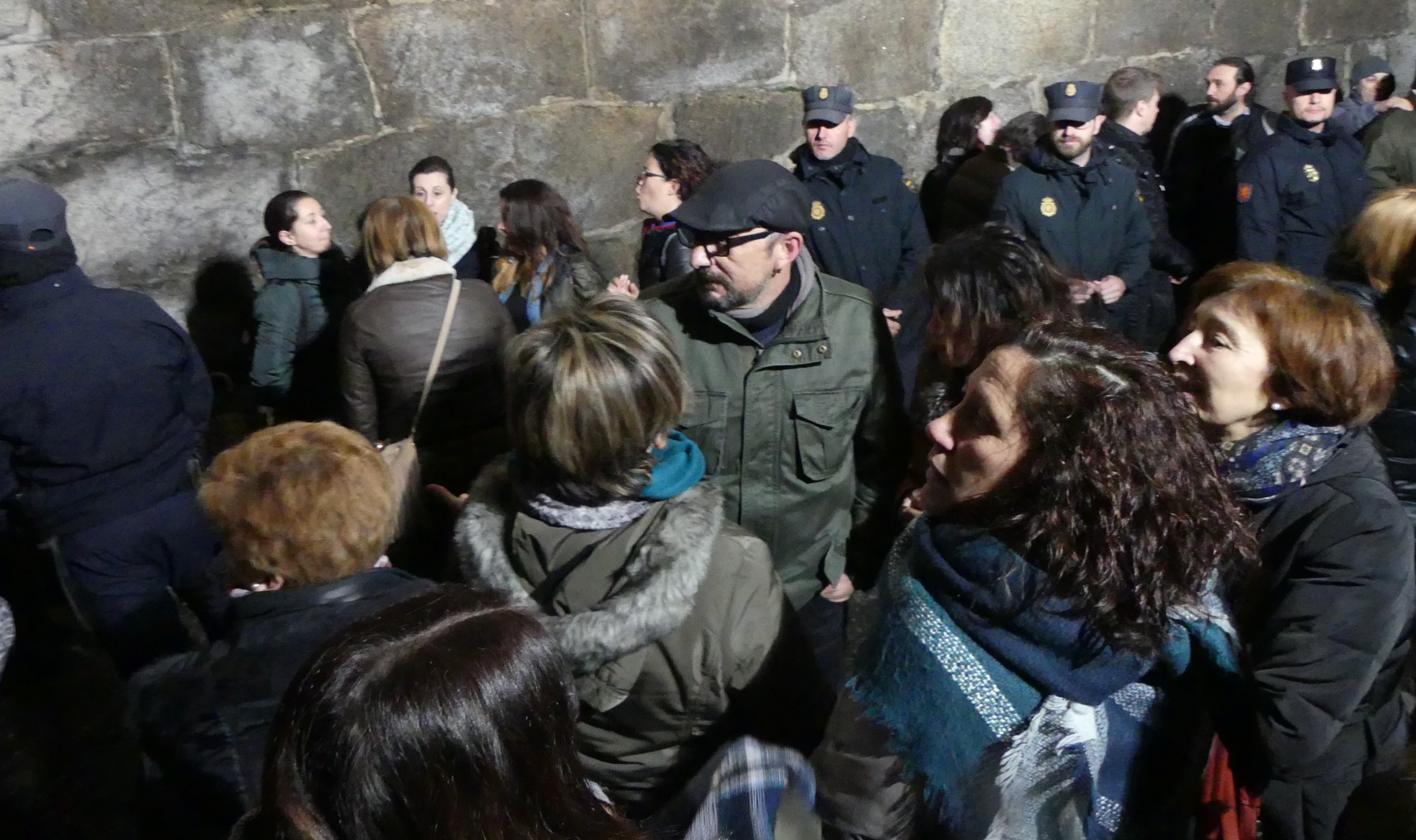 Os sindicatos -ao igual que fixeran tras o primeiro día de folga- critican a actitude dos axentes, que mesmo impediron a labor do comité de folga para comprobar po cumprimento dos servizos mínimos. De feito, minutos antes da detención producírase un pequeño incidente despois de que un policía empurrase de moi malos modos a unha traballadora.