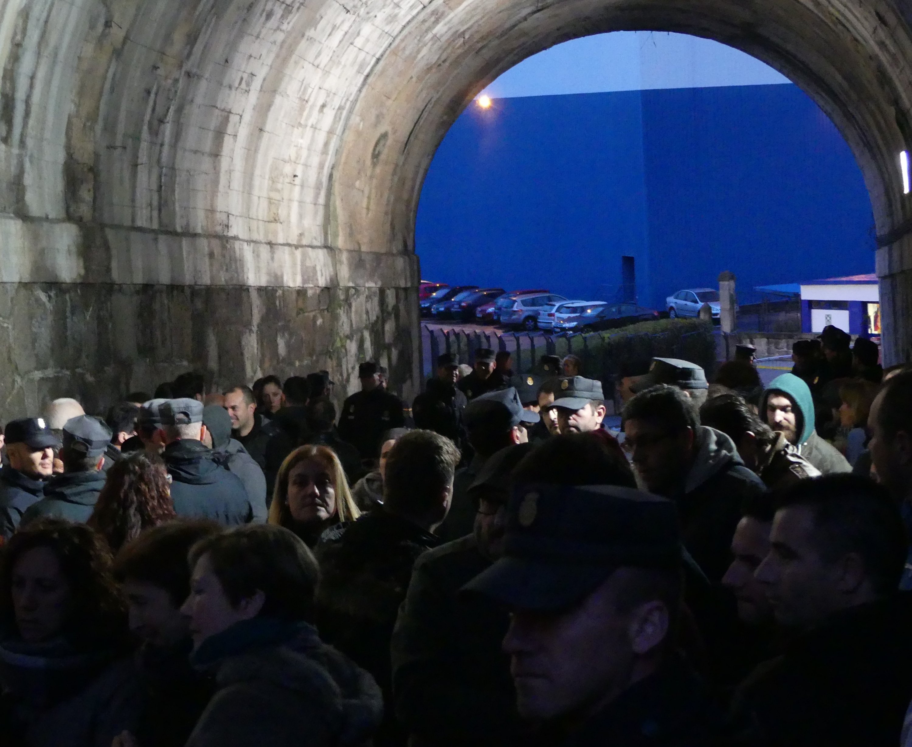 Dende as centrais convocantes da folga -CIG, CUT, UGT e USO- rexeitan esta acusación e sinalan que o que fixo o detido foi axudar a incorporarse a outra traballadora que caera ao chan como consecuencia dos empurróns dos axentes, que pretendían deixar libre un carril no interior do túnel de acceso á empresa -onde se refuxiaron os piquetes por mor da choiva- para facilitar a entrada de vehículos. “O único que pasou foi que esvarou e parece ser que se precipitou contra un policía, tras o que se abalanzaron sobre el; pero en ningún momento houbo violencia nin intención de agredir a ninguén”, explican.