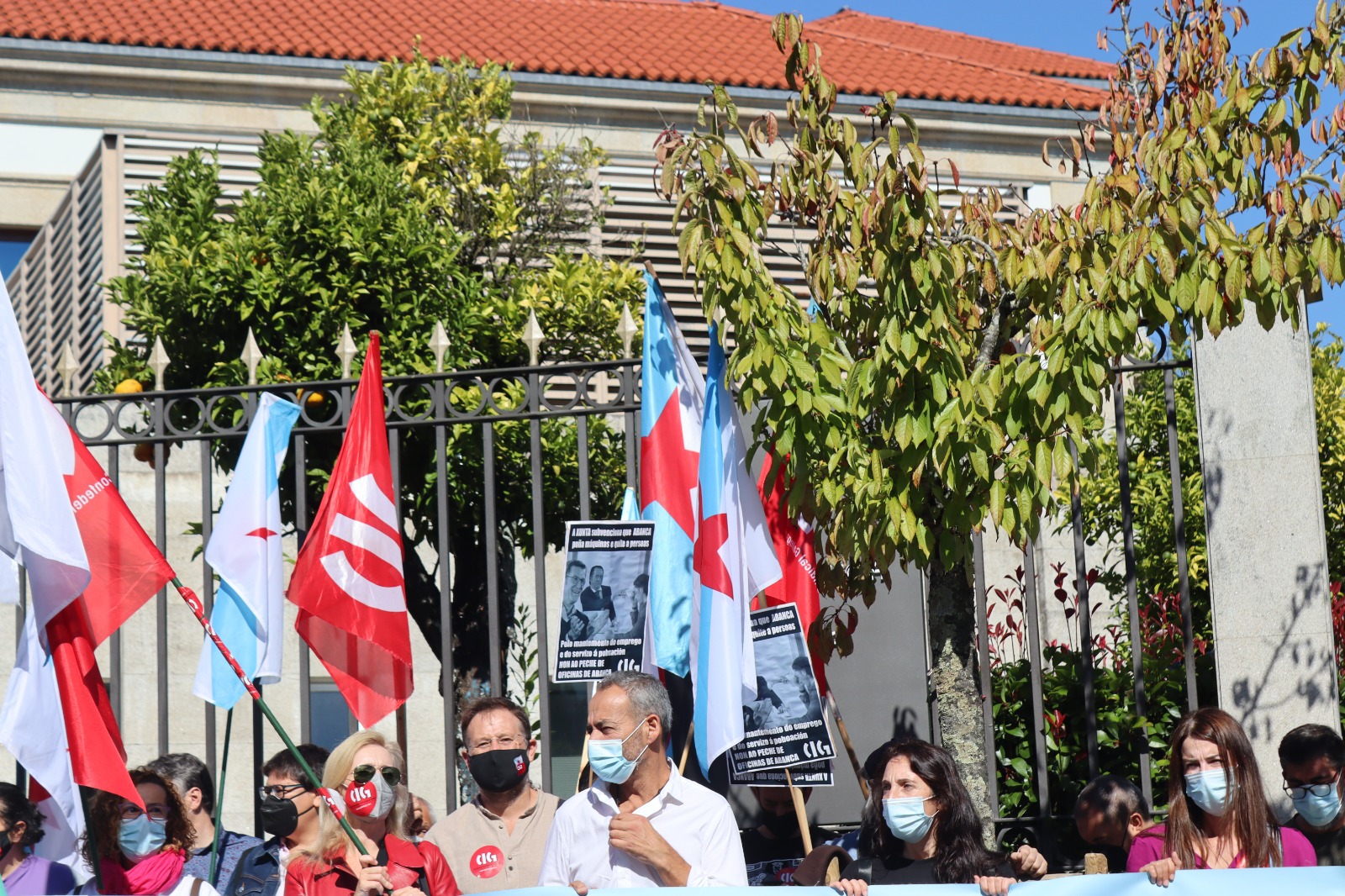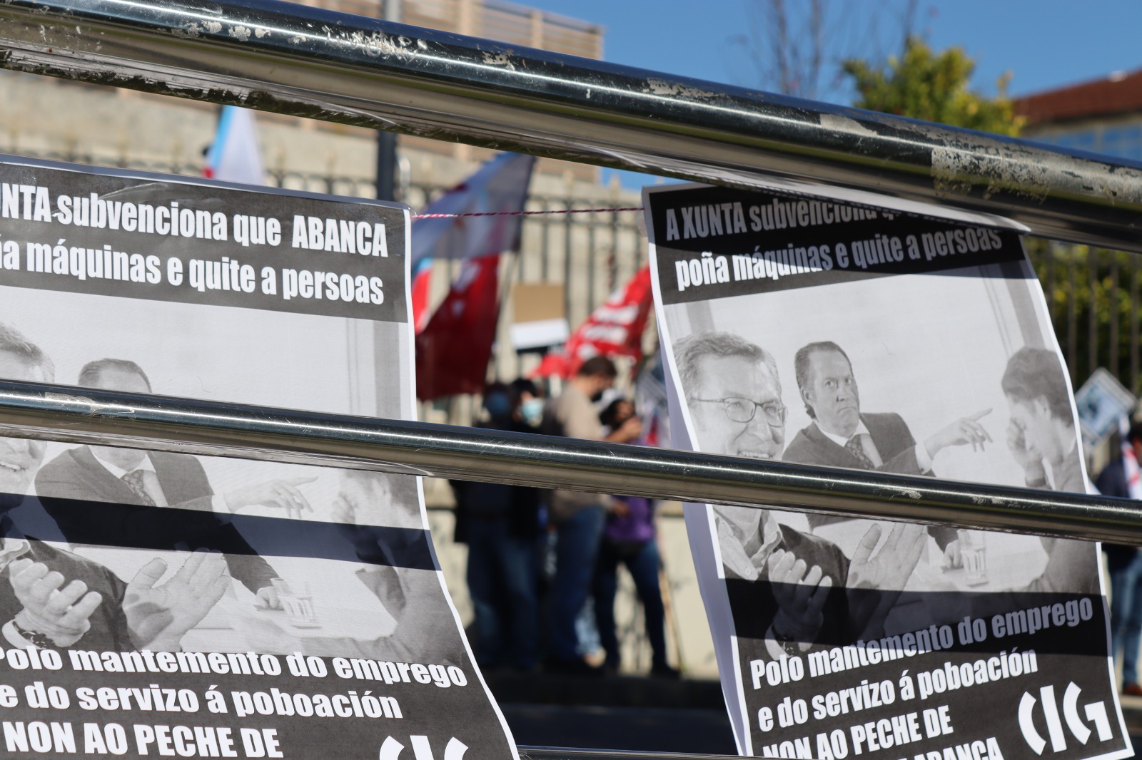 Como denuncia a CIG-Abanca, a Xunta de Galicia subvencionará con diñeiro público os peches de oficinas no rural de Abanca, o que implica, na práctica, “poñer máquinas onde quita a persoas”, coma recollían os cartaces que portaban as persoas presentes na concentración.