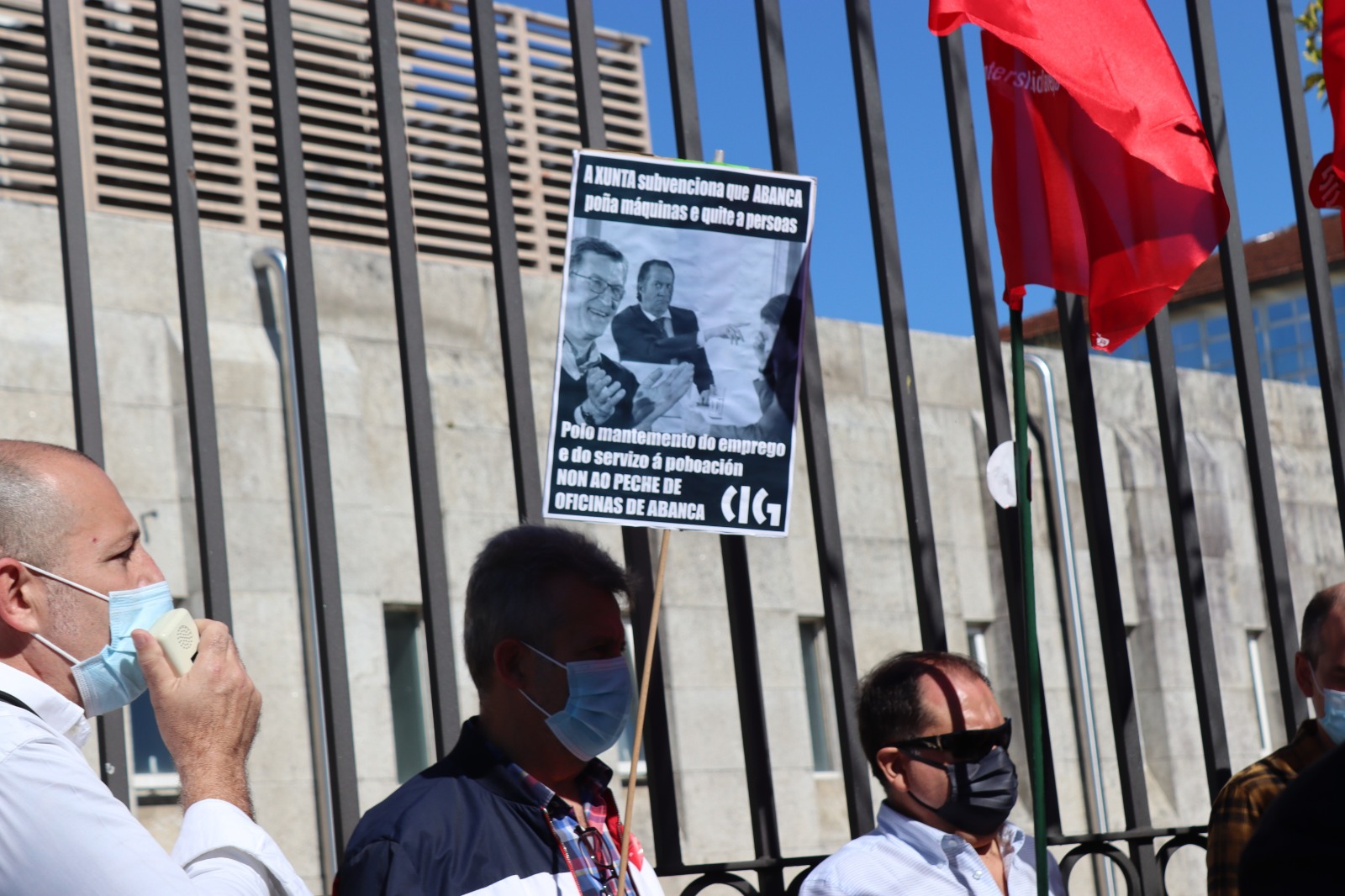 “As oficinas bancarias para nós son centros de traballo, é gravísimo subvencionar que se destrúa emprego por parte dunha empresa que ten beneficios multimillonarios”, aseguraban no decurso da concentración desde a sección sindical. “Se o Feixó e o PP queren seguir regalándolle diñeiro a Abanca, que o fagan do seu peto, subvencionr os nosos despedimentos con diñeiro público é inmoral”.