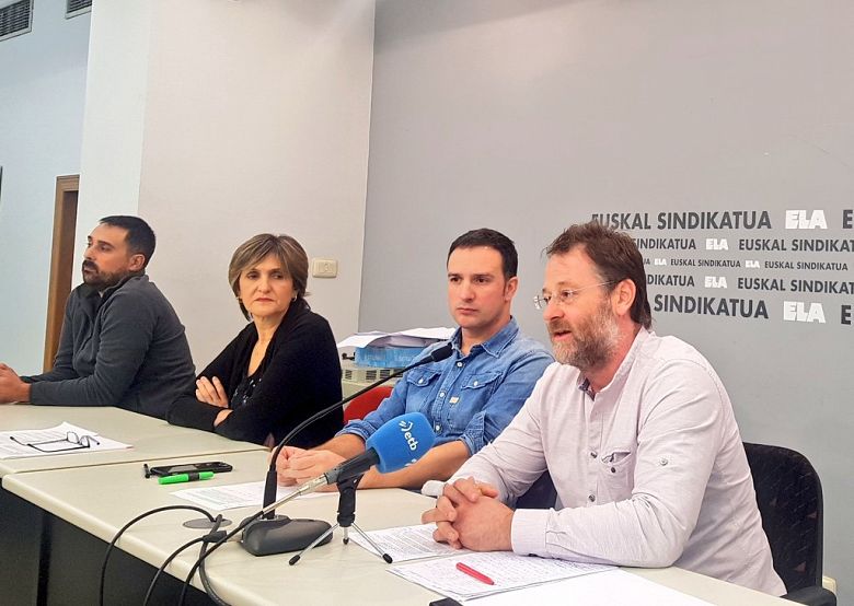 O secretario xeral da CIG, Paulo Carril e o secretario xeral de ELA, Mitxel Lakuntza, compareceron esta mañá en rolda de prensa, en Bilbo, xunto co secretario confederal de Negociación Colectiva da CIG, Francisco González Sío, e a secretaria de Relacións Internacionais de ELA, Laura González de Txabarri, para presentar as liñas de actuación común acordadas entre as organizacións sindicais maioritarias de Galiza e Euskal Herria para achegar as súas demandas ao novo goberno que se conforme no Estado.