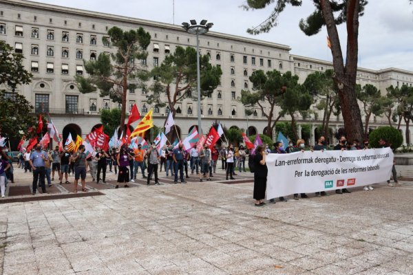 ELA, CIG e Intersindical concentráronse esta mañá ante a sede do Ministerio de Traballo para reclamar á ministra, Yolanda Díaz, a inmediata derrogación das reformas laborais. Os secretarios xerais de ELA, Mitxel Lakuntza, a CIG, Paulo Carril, e a Intersindical de Catalunya, Sergi Perelló, que encabezaban a mobilización, denunciaron ademais a negativa da titular do Ministerio a recibilos.
