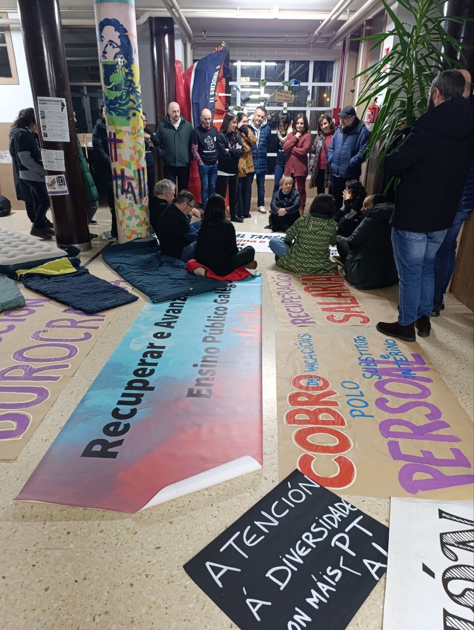 Despois de pasar a noite durmindo nos tres centros, na mañá deste venres leváronse a cabo concentracións á entrada das clases para continuar con esta visibilización social.