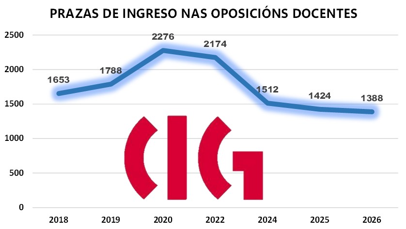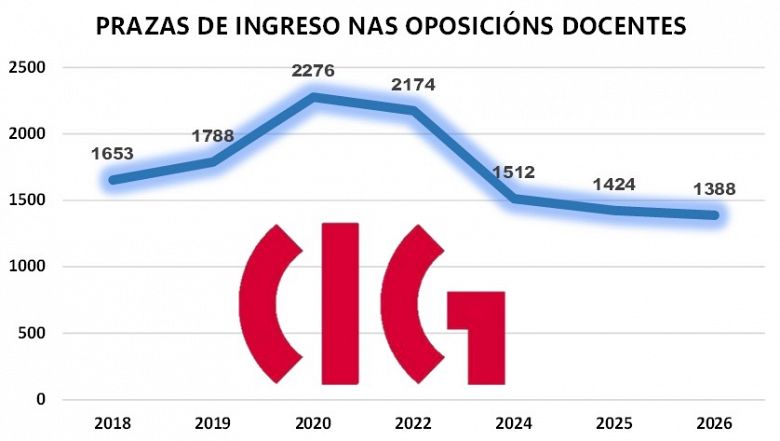 Nunha comparecencia ante os medios de comunicación, a secretaria nacional da CIG-Ensino, Laura Arroxo, detallou as prazas convocadas nas oposicións docentes nos últimos sete anos para demostrar “unha vez máis que o conselleiro de Educación mente e manipula sen rubor porque como se pode comprobar a deste ano é a peor oferta pública docente desde 2018, con apenas 1.388 prazas da quenda libre convocadas (sen contar as de discapacidade e de promoción interna)”. Unha cifra, sinalou, moi lonxe das 2.276 do ano 2020 por exemplo.