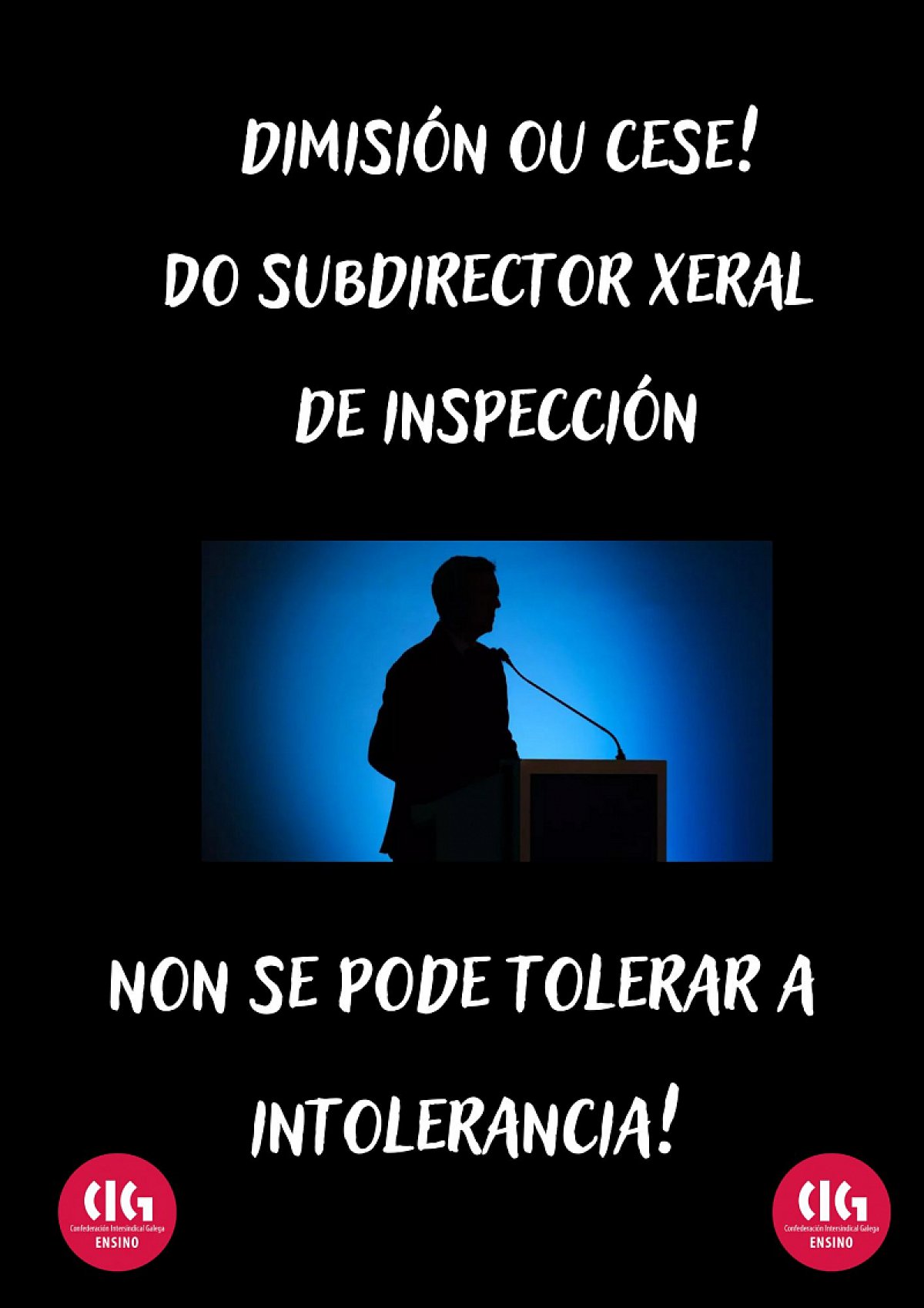 A CIG-Ensino exixe que se tomen medidas con carácter inmediato e que sexan cesadas dos seus cargos a persoa ou persoas que dean respaldo a un pensamento tan reaccionario como o que se atopa, con todo luxo de detalles, nos escritos deste cargo político, comezando por el propio e por quen por riba del lle dea cobertura.
