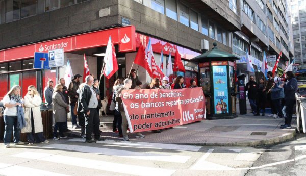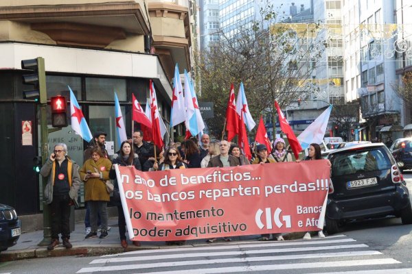 No caso das antigas caixas de aforro, explicou Clodo Montero, secretario da sección sindical da CIG en Abanca, a situación aínda é peor “porque dende o inicio do proceso de reestruturación financeira en 2010 temos practicamente os soldos conxelados, e houbo unha perda en convenio colectivo do 23% á que hai que engadir os recortes introducidos en cada un dos expedientes colectivos aplicados, que no caso de Abanca foron seis”. Rexeitou a proposta patronal na mesa de negociación xa que só ofrece un aumento do 5% en tres anos.