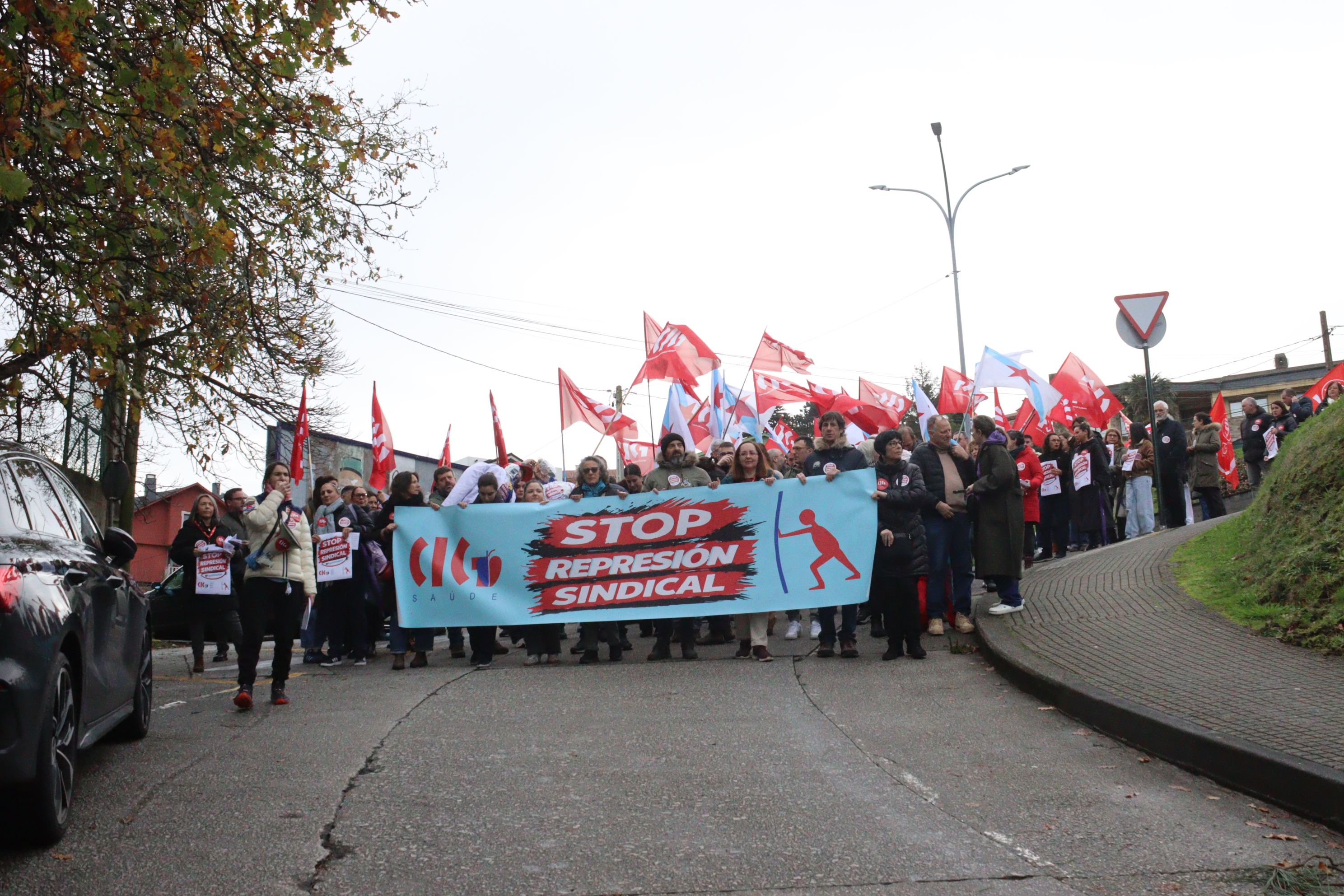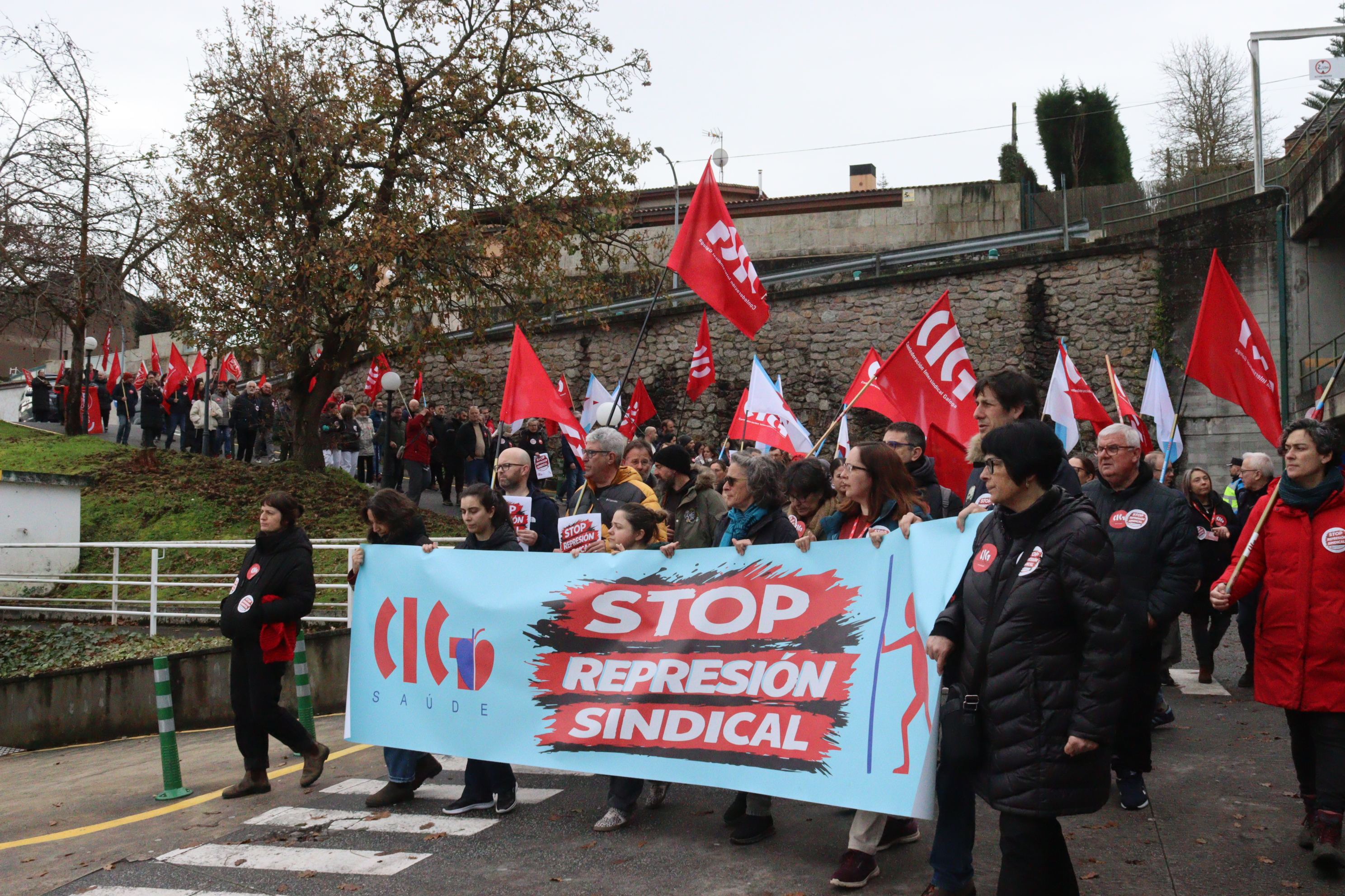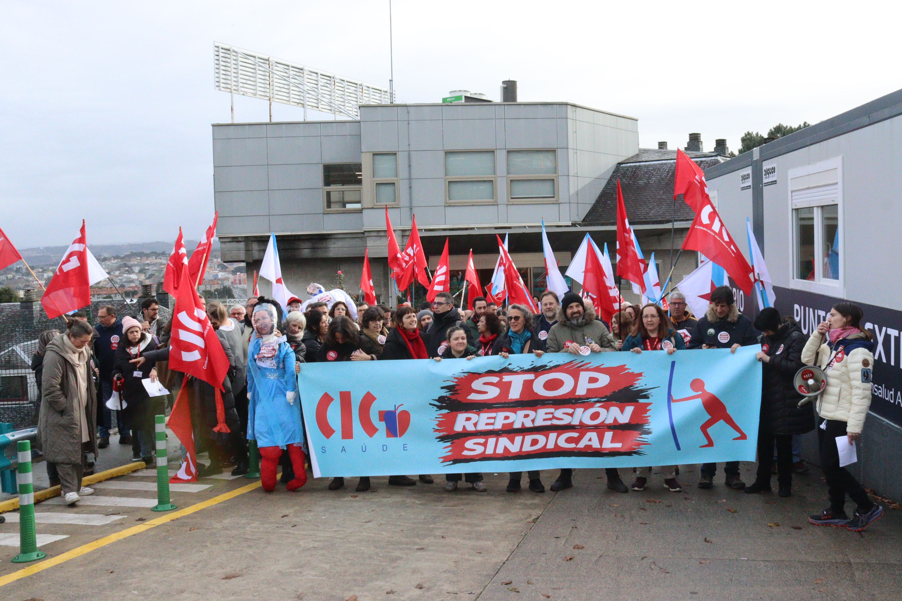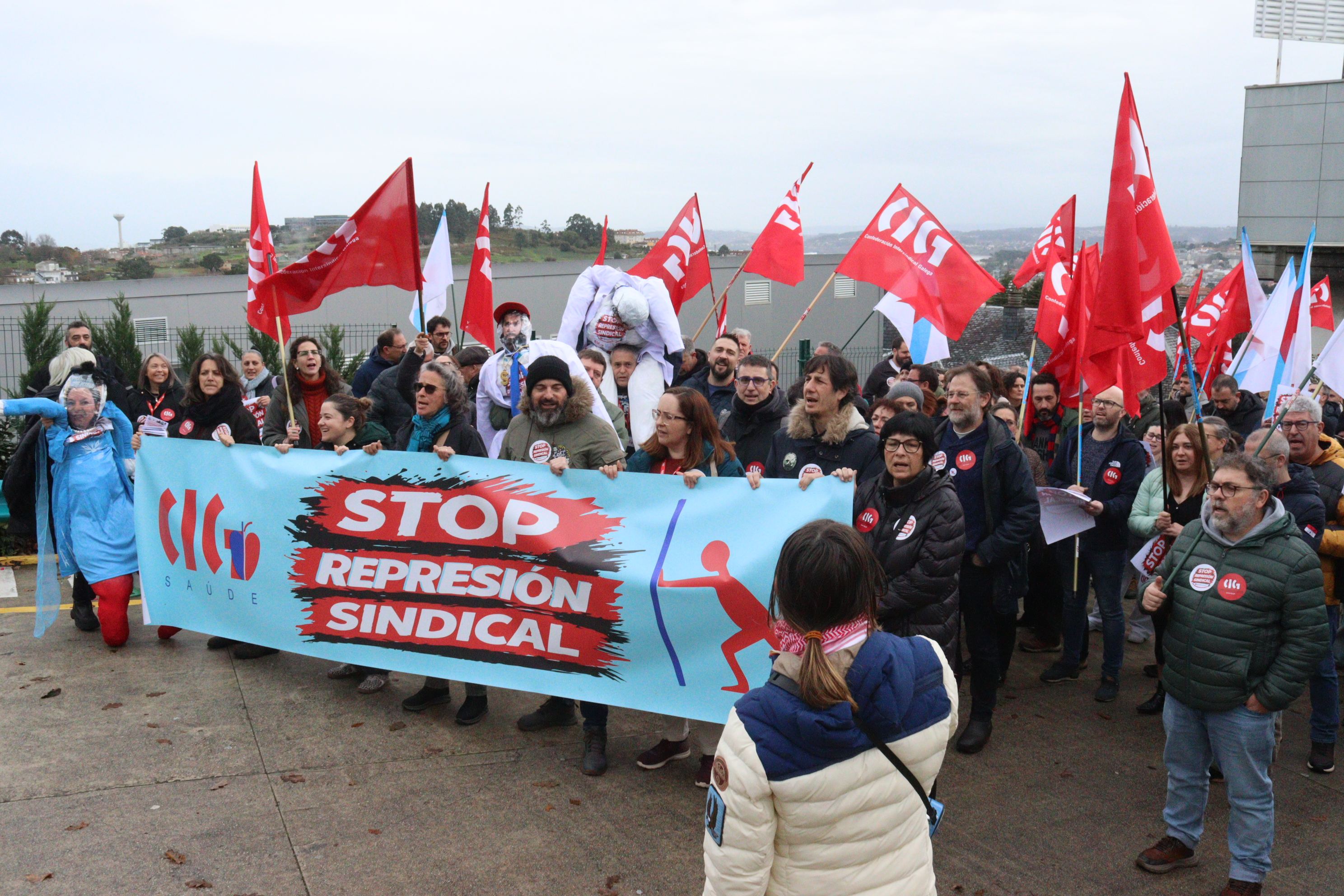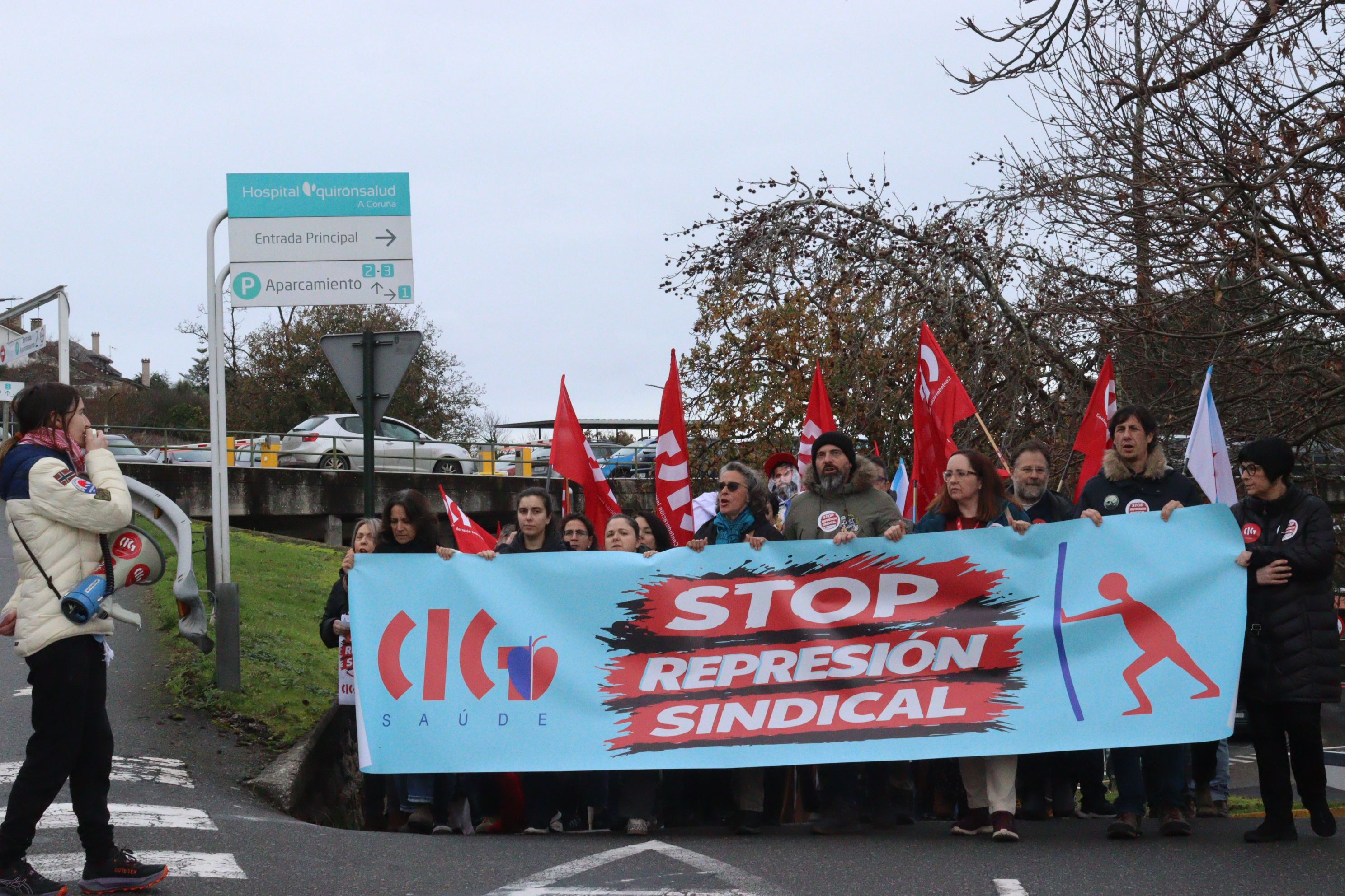 Delegados e delegadas da CIG e persoal do Policlínico Santa Teresa da Coruña mobilizáronse este xoves no centro sanitario para rexeitar a política de represión sindical exercida por QuirónSalud. A persecución á representación da CIG ten a súa máis grave e recente expresión na sanción imposta á presidenta do comité e na sanción con despedimento disciplinario aplicada ao secretario, cando se atopaba ademais en situación de baixa médica.