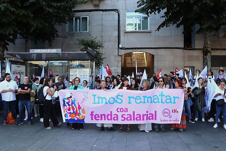 A secretaria das Mulleres da CIG advertiu que no ano 2021 (segundo os datos da Axencia Tributaria), en Galiza a diferenza entre os salarios dos homes e os das mulleres roldaba o 19%, de forma que as traballadoras galegas percibimos de media polo seu traballo 4.238 euros anuais menos que os seus compañeiros. Nos sectores feminizados, esta diferenza ascende até o 30%, con ingresos medios que apenas superan a metade do SMI. "Se comparamos salarios de sectores feminizados cos de sectores masculinizados, a diferenza acada o 45%", engadiu.