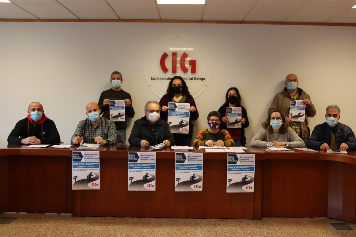 A Executiva nacional da CIG-Saúde compareceu esta mañá en rolda de prensa para anunciar a posta en marcha dunha campaña pola recuperación de salarios do persoal do SERGAS que contempla a presentación dunha reclamación en vía administrativa; unha Proposición non de Lei de Iniciativa Popular e mesmo acudir ao Tribunal Europeo de Dereitos Humanos se non se resolve