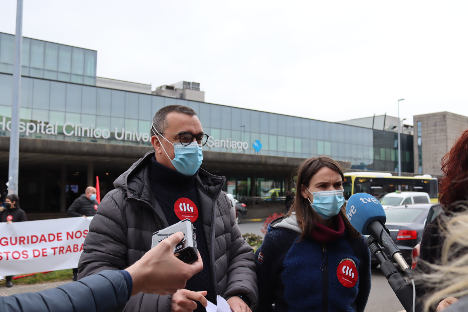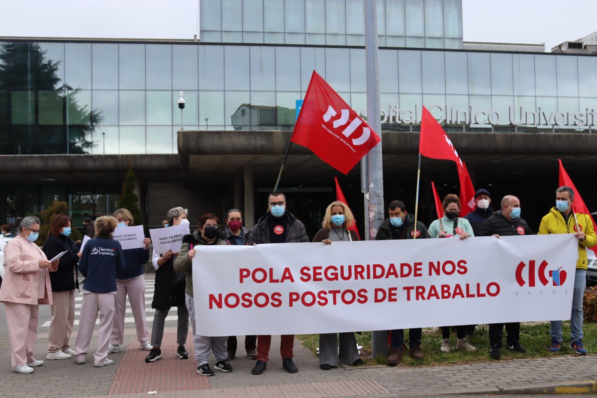 Persoal do Hospital Clínico de Santiago mobilizouse esta mañá para reclamar medidas de seguridade nos postos de traballo. Unha situación que a CIG-Saúde de Compostela ten denunciado de forma reiterada na Inspección de Traballo e que a Xerencia non resolveu. Ademais, representantes da central sindical anunciaron a presentación dunha denuncia perante a Fiscalía, tamén contra a Xerencia, pola situación especialmente grave que afecta á área de Anatomía Patolóxica.