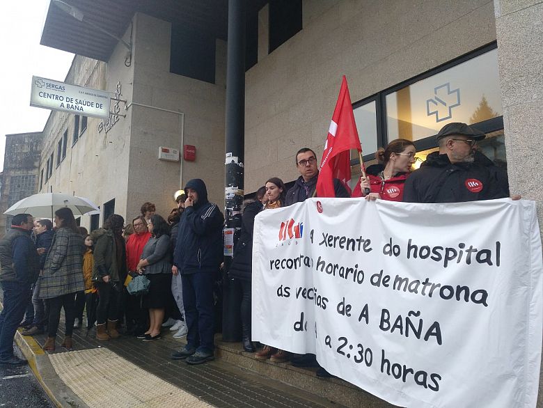 Algo semellante ocorre na Baña, onde un cento de persoas se concentraron o pasado sábado diante do centro de saúde, convocadas pola CIG-Saúde, para protestar polo novo horario asistencial que se lle impón desde a Xerencia de Santiago, á matrona. Concentración que se repetirá o vindeiro sábado de 10:00 a 12:30 horas.