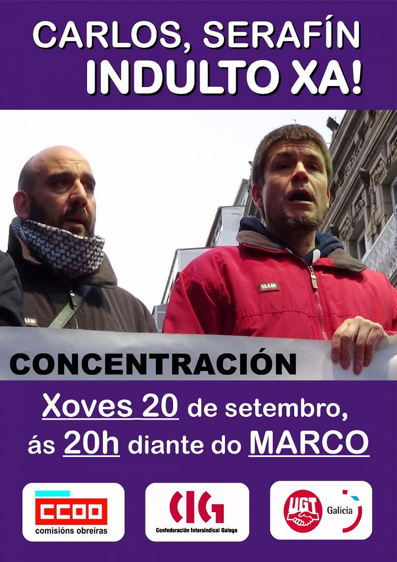 CIG, UGT e CCOO expresan á subdelegada a necesidade inmediata do indulto a Carlos e Serafín