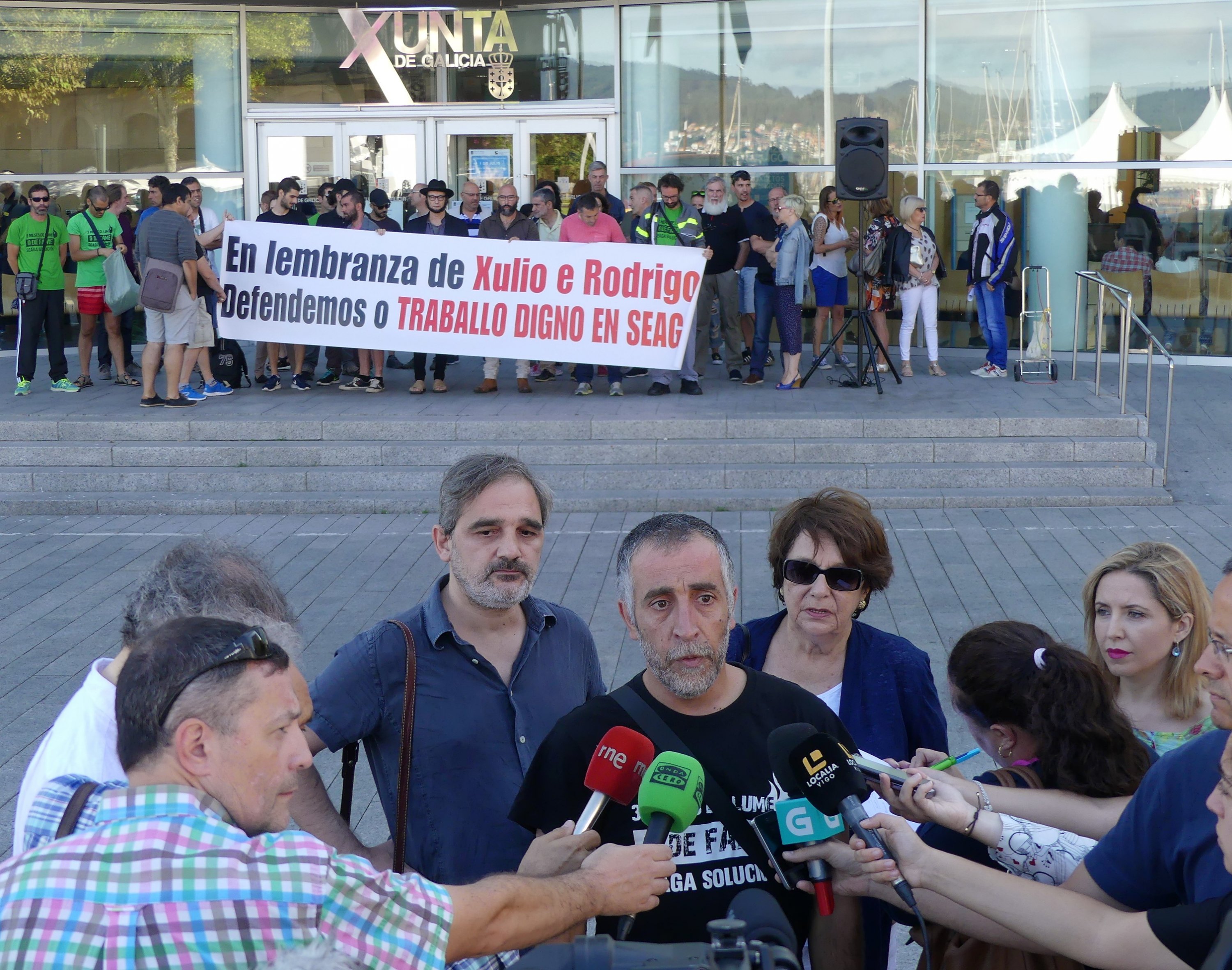 O presidente do comité de empresa de Seaga na provincia de Pontevedra, Josafat Puente, da CIG, explicou que coa protesta celebrada diante da delegación da Xunta en Vigo de 11:00 a 12:00 horas queren en primeiro lugar honrar a memoria dos dous compañeiros falecidos en accidente laboral, mais tamén para “amosar o noso rexeitamento á sentenza do TSXG na que se lles culpabiliza da súa propia morte”. Explicou que aínda que na resolución xudicial se sinale a responsabilidade da Xunta por non ter unha motobomba no lugar do sinistro, “outra gran parte da culpa recae sobre os propios traballadores falecidos supostamente por estar onde non debían, cando se atopaban onde lles mandaron”.