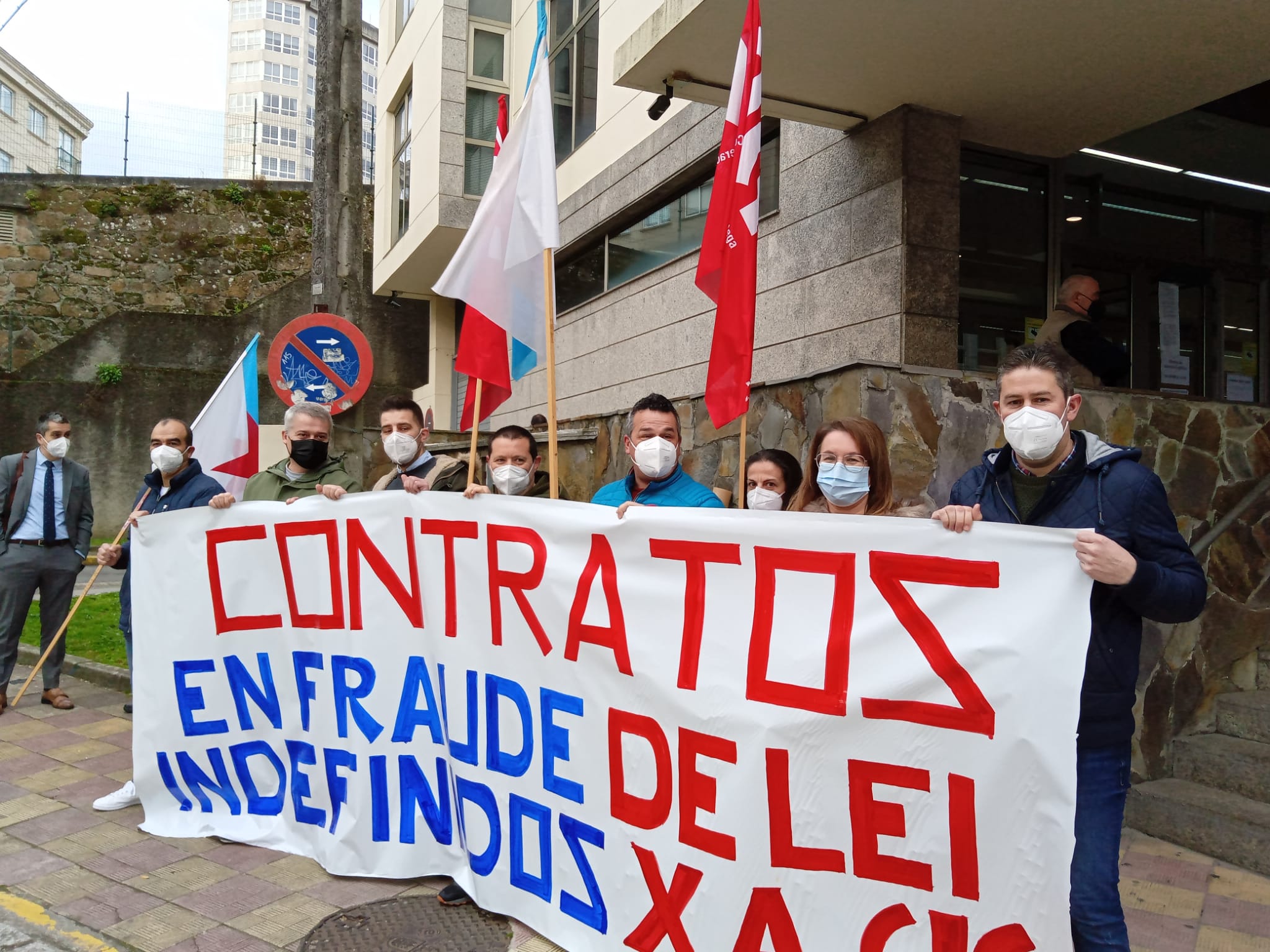 A FGAMT-CIG mobilizouse esta mañá diante dos xulgados de Ferrol coincidindo coa celebración do primeiro dos xuízos contra os despedimentos de catro traballadores da UTE Ferrol Servizos Sanitarios, en concreto de Ambulancias Ortigueira, que estaban con contratos en fraude de lei e en demanda da súa conversión en indefinidos.