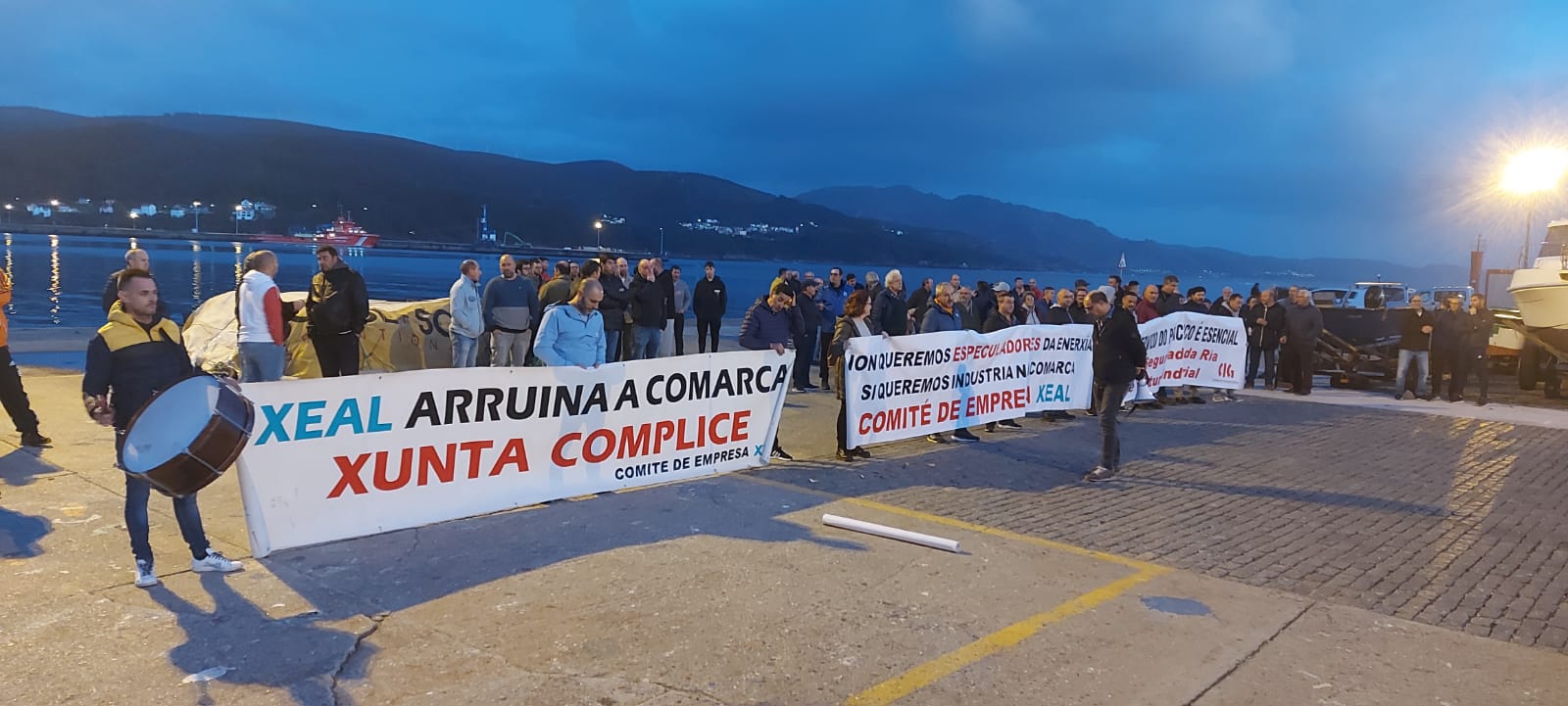Traballadores e traballadoras de XEAL e veciñanza da comarca concentráronse esta tarde diante das oficinas de Portos de Galiza en Corcubión en rexeitamento á supresión do servizo de practicaxe e o traslado da grúa do porto de Brens, así como para reclamar futuro industrial e emprego na comarca.