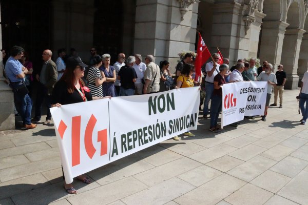 Ao berro de "a única solución, a readmisión", a CIG realizou este venres unha concentración diante na Praza de María Pita en rexeitamento ao despedimento dun traballador municipal que no momento de ser despedido era delegado sindical da CIG na sección sindical do Concello da Coruña.