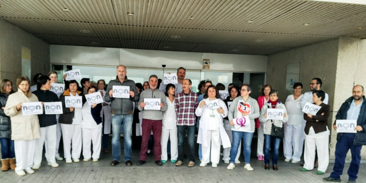 O persoal do Hospital da Costa concentrouse este luns en repulsa aos asasinatos machistas de Ana María Enjamio e Elena Michaela Marcus.