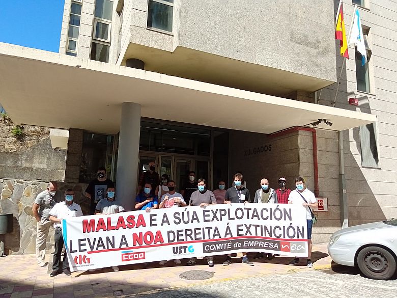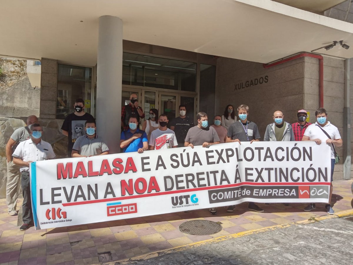 Traballadores e traballadoras de Noa Madera Creativa concentráronse esta mañá diante dos xulgados de Ferrol en rexeitamento aos despedimentos e ao ERTE de 15 meses impostos polo Grupo Malasa (propietario da factoría de Fene).