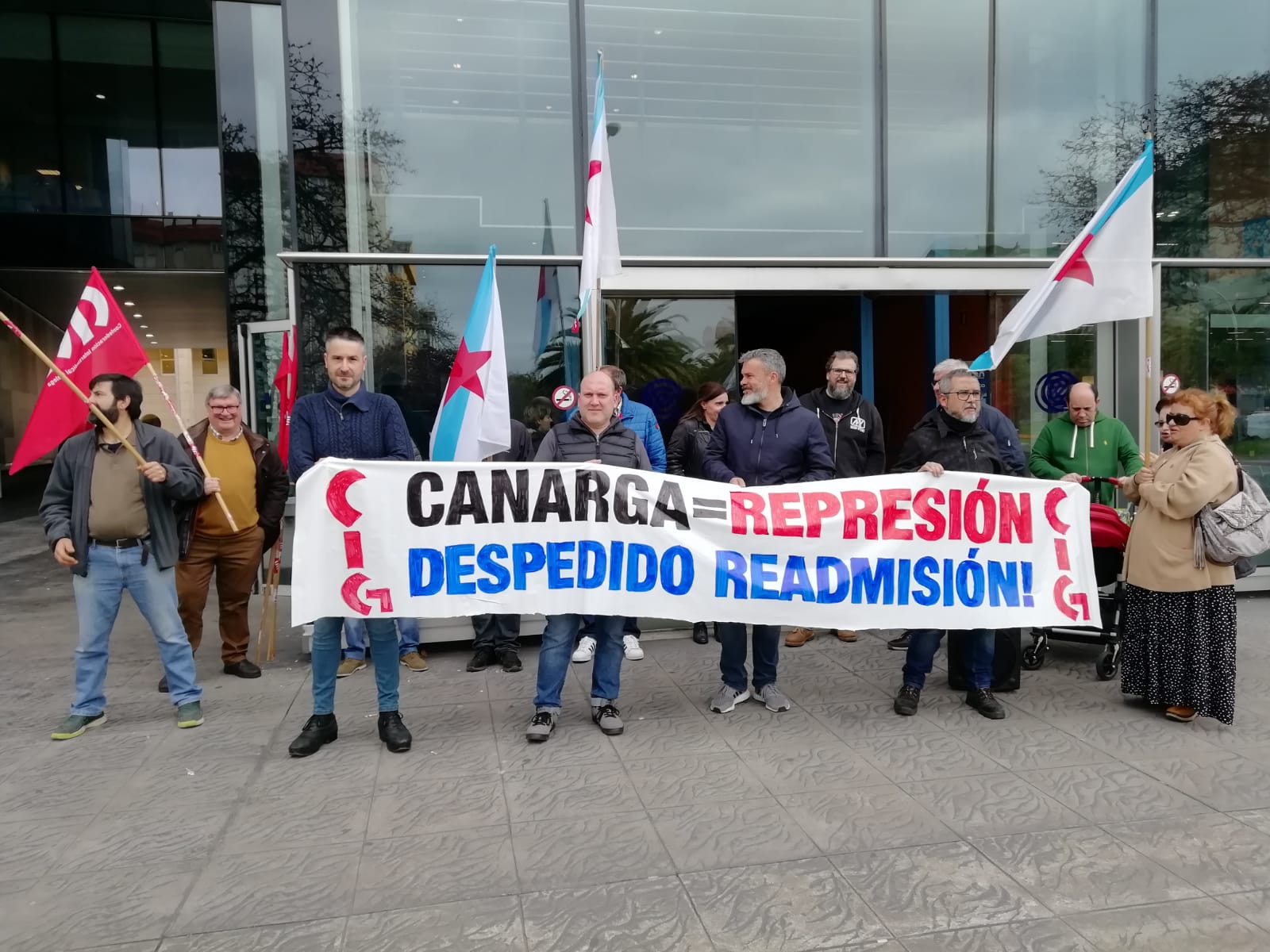 A CIG mobilizouse este mércores para esixir a readmisión do delegado de persoal ao que Canarga despediu en represalia pola súa actividade sindical en defensa dos dereitos dos seus compañeiros e compañeiras. Unha primeira concentración tivo lugar pola mañá diante do SMAC da Coruña -con motivo do conciliación que rematou sen avinza-, e unha segunda protesta pola tarde ás portas das oficinas de Canarga no Polígono da Agrela.
