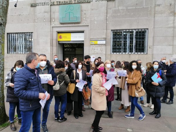 Traballadores e traballadoras da Inspección de Traballo e Seguridade Social (ITSS) concentráronse este martes diante de todos os edificios deste organismo para demandar un reforzo de persoal, medios adecuados, recursos técnicos e un recoñecemento "máis alá dos discursos baleiros". Con estas mobilizacións, que preceden á xornada de folga convocada para o próximo 30 de marzo, o persoal quere protestar polos incumprimentos do Ministerio de Traballo e Economía Social e do Goberno español que non reforzaron aínda o sistema, malia o acordo asinado o pasado mes de xullo coas organizacións sindicais.