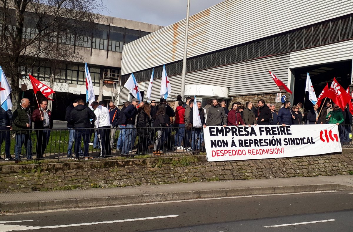 Logo de ter impugnado o proceso electoral diante da Inspección de Traballo e de ter presentado na consellaría de Emprego e Igualdade papeleta de conciliación solicitando a nulidade do despedimento iniciábase hoxe a primeira das mobilizacións previstas para denunciar publicamente o despedimento dun condutor da Empresa Freire que se ía presentar pola CIG nas eleccións sindicais.