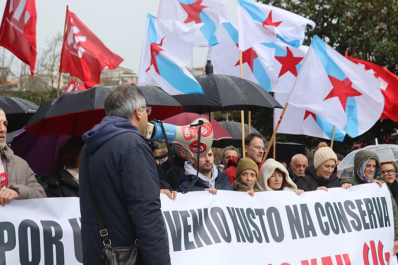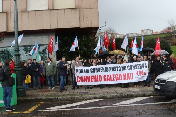 Ao mesmo tempo, coincidindo coa celebración da xuntanza en Madrid, arredor dun cento de persoas delegadas da central sindical no sector da conserva desenvolveu unha concentración diante da sede da Confederación de Empresarios/as de Pontevedra (CEP) en Vigo ao berro de “convenios aquí e non en Madrid”.