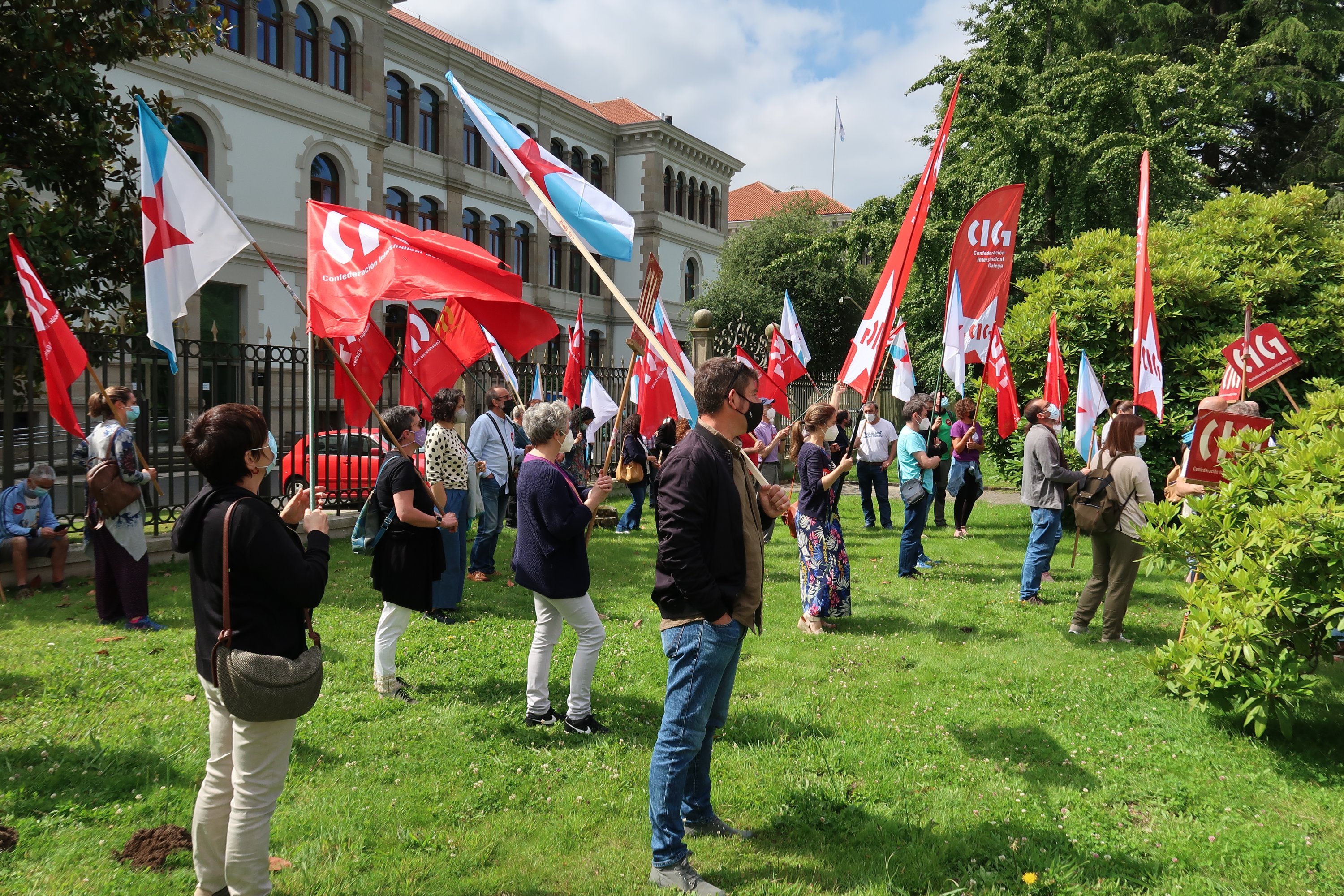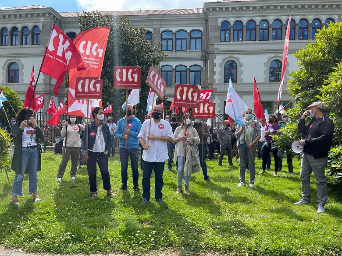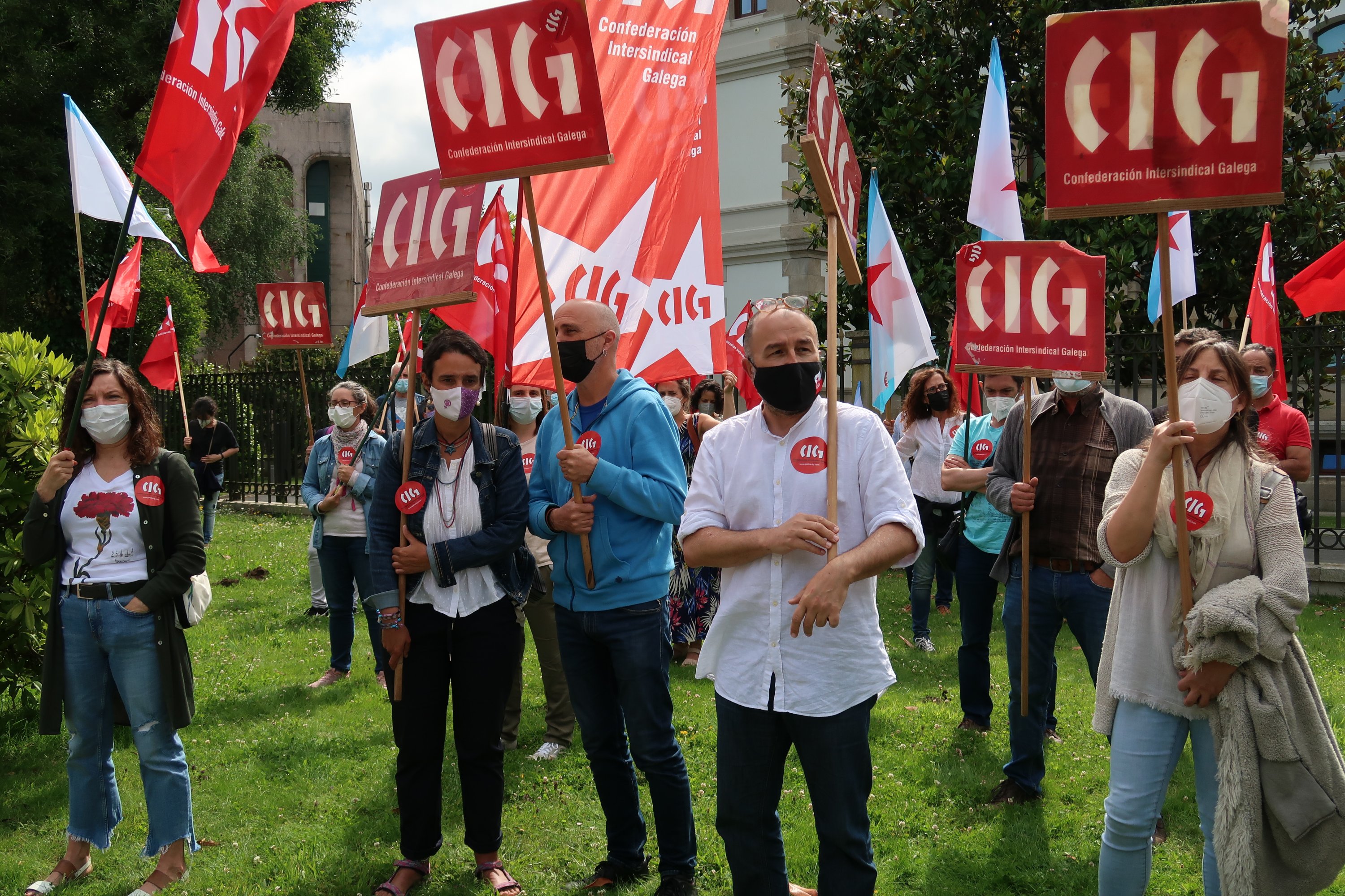 No último día do calendario escolar co presente curso escolar 2020/21 a CIG-Ensino volveu concentrarse ás portas da Consellaría de Educación para demandar o mantemento dos cadros de persoal deste curso escolar, defendendo que se manteñan as ratios actuais e todo os desdobres autorizados.