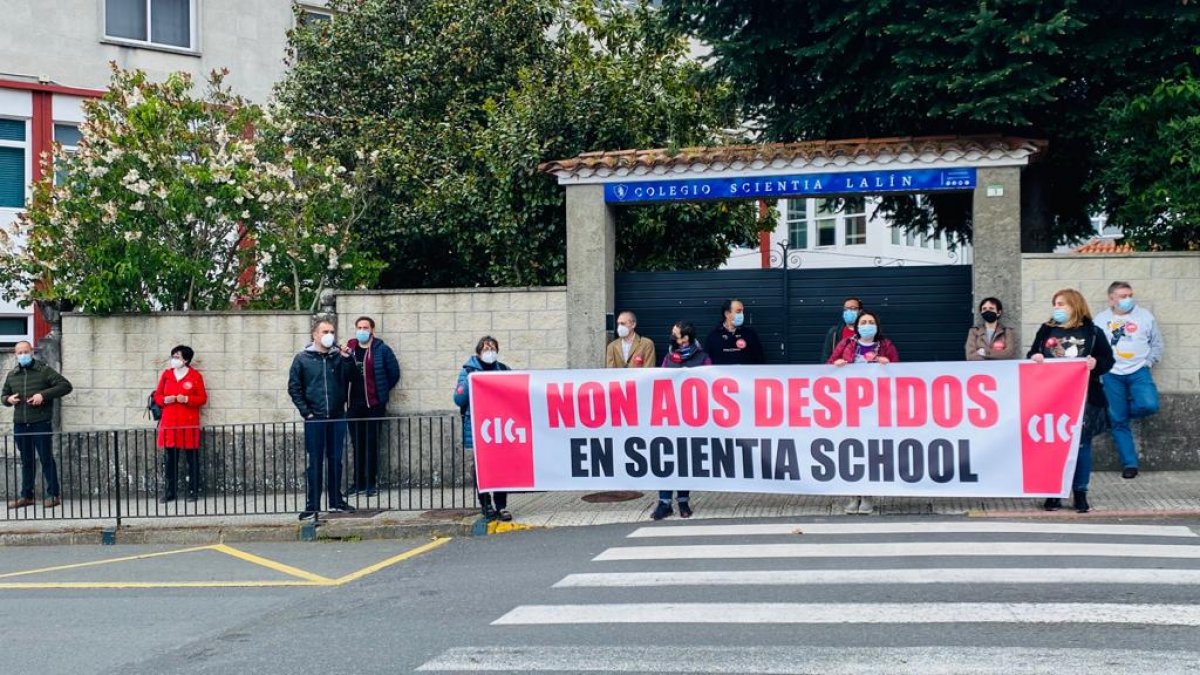 A CIG-Ensino desenvolveu hoxe unha nova concentración ás portas do Scientia School de Lalín para reclamar a readmisión dos seis traballadores/as despedidos/as por supostas causas organizativas e técnicas, incumprindo deste xeito as condicións da poxa na que adquiriu as instalacións do antigo colexio Sagrado Corazón do Deza.