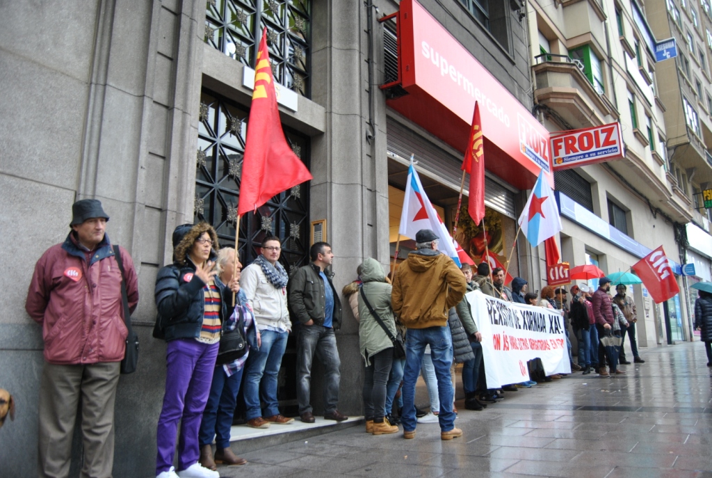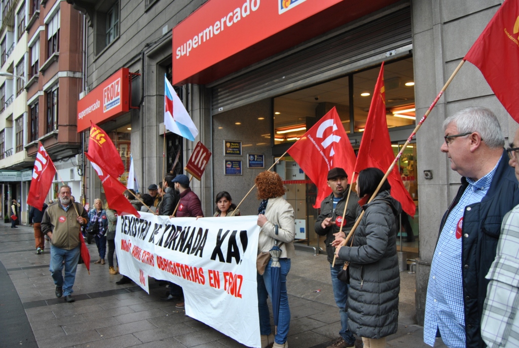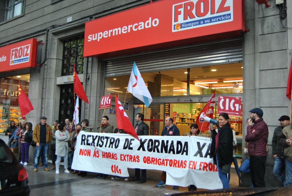 A CIG-Servizos desenvolveu esta mañá unha concentración diante do Froiz da Avenida de Oza da Coruña para esixir da empresa que implante de xeito inmediato o rexistro de xornada, tal e como estabelece a lexislación e tal e como lle requiriu a Inspección de Traballo.