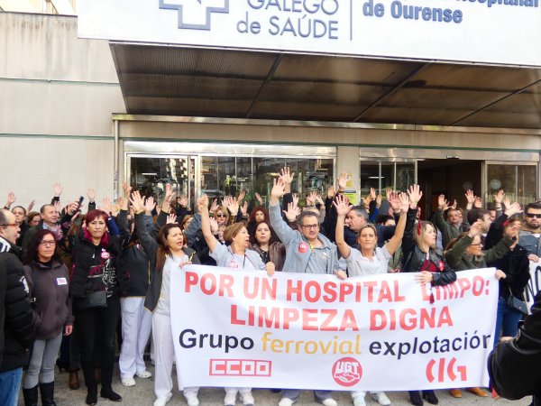 O cadro de persoal da concesionaria do servizo de limpeza do Complexo Hospitalario Universitario de Ourense (CHUO) decidiu convocar folga indefinida a partir do luns 5 de febreiro ante as pretensións de Ferrovial de que cada traballador/a se faga cargo de 22 habitacións ademais das zonas comúns. Dende o comité de empresa, que xa iniciou mobilizacións para rexeitar a proposta, sosteñen que esta carga de traballo é inviábel nunha xornada laboral de sete horas.