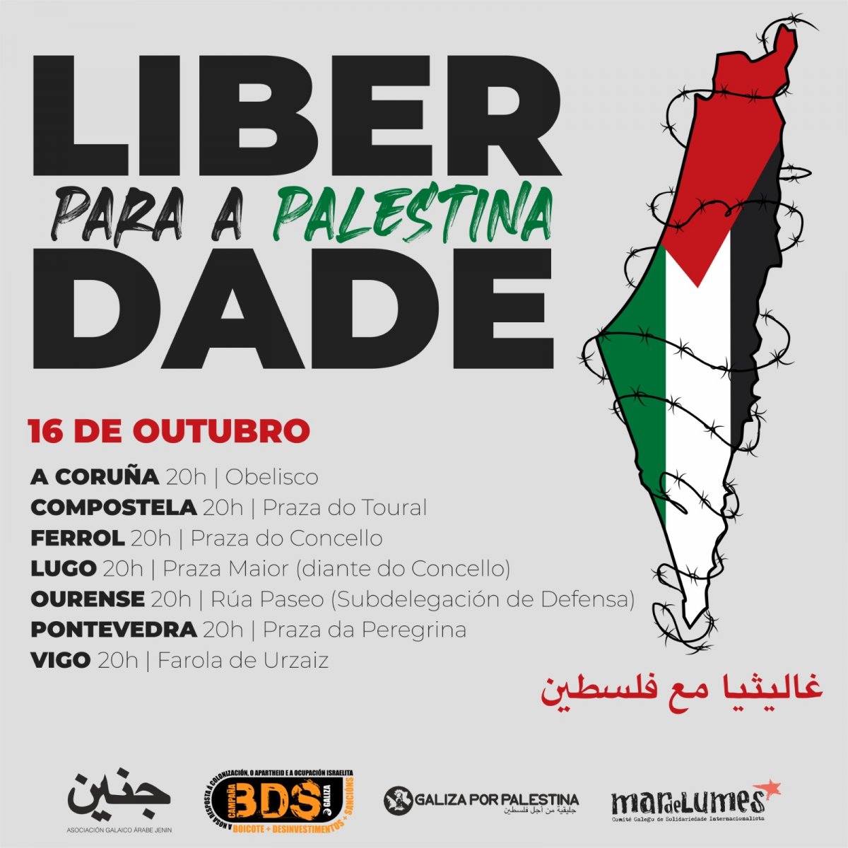 Convocadas mobilizacións nas sete cidades en demanda de “Liberdade para Palestina”