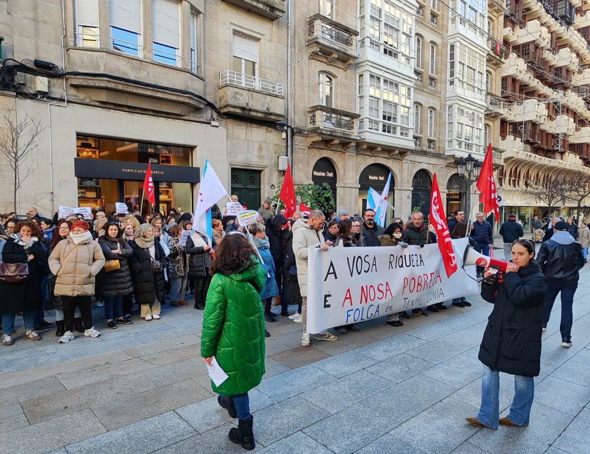 A asemblea de persoas traballadoras da empresa Sociedad Textil Lonia de Ourense decidiu convocar dúas novas xornadas de folga os vindeiros días 14 e 15 de xaneiro para reclamar unhas condicións laborais dignas ante a proposta “insuficiente e indignante” da empresa. O cadro de persoal aproveitou a xornada de folga do luns día 5 -a primeira de 24 horas tras os paros parciais convocados anteriormente- para desenvolver novas mobilizacións diante de tendas de Carolina Herrera e Purificación García na cidade.