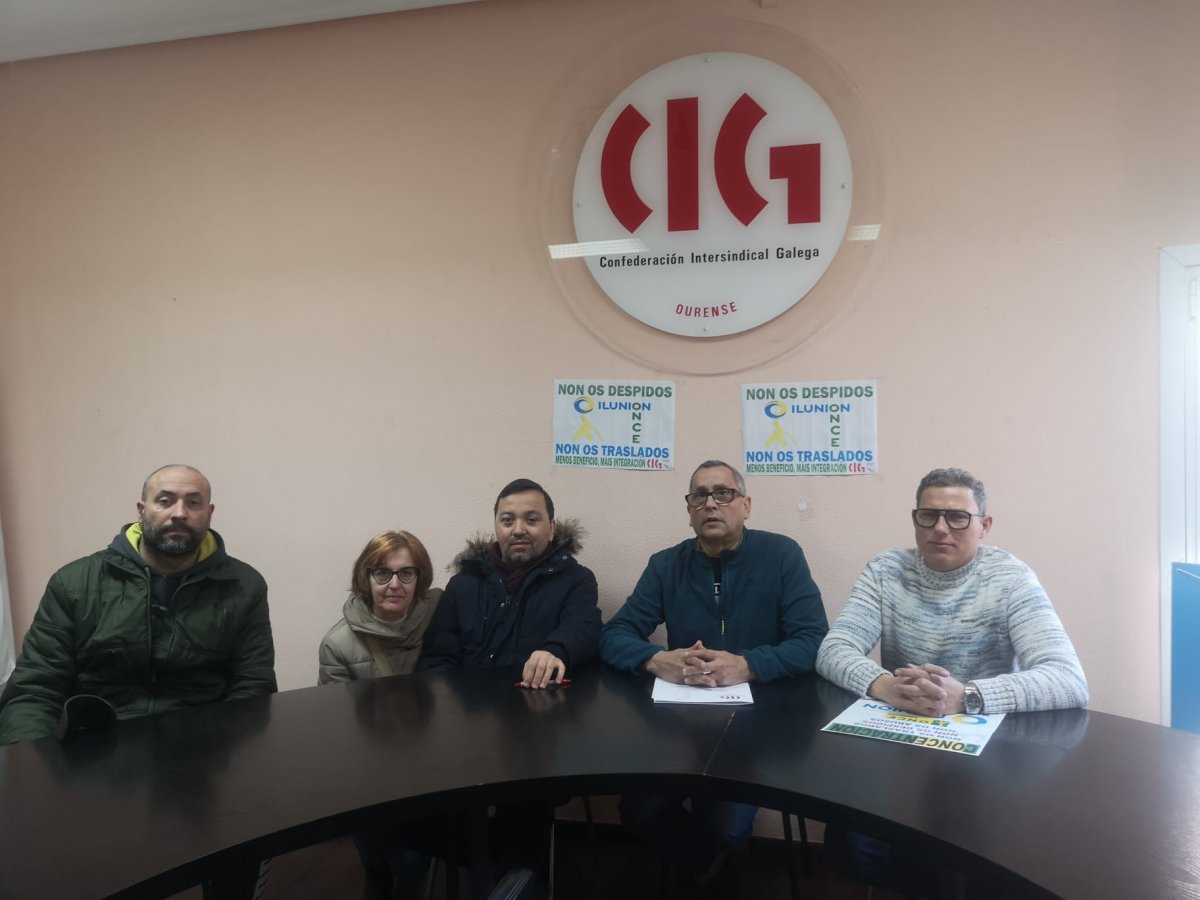 Varios/as dos afectados/as compareceron hoxe en rolda de prensa xunto ao secretario comarcal da CIG-Industria de Ourense, Indalecio Gómez, para denunciar a decisión de Ilunion e anunciar que a protesta terá lugar diante da delegación ourensá da ONCE de 10:00 a 11:00 horas.