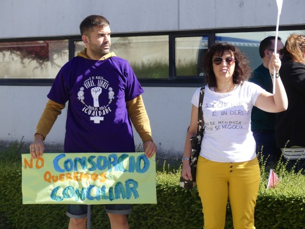 “É inconcibíbel que sexa precisamente nun servizo público e indispensábel para que a clase traballadora, e nomeadamente as mulleres, poidan conciliar onde se denegue de xeito reiterado este dereito ao seu persoal”. Así o denunciaba a secretaria confederal das Mulleres da CIG, Margarida Corral, as dificultades de conciliación das traballadoras do Consorcio, no decurso da concentración celebrada esta mañá diante do edificio que alberga a Secretaría de Igualdade da Xunta de Galiza e o Consorcio de Servizos de Igualdade e Benestar.