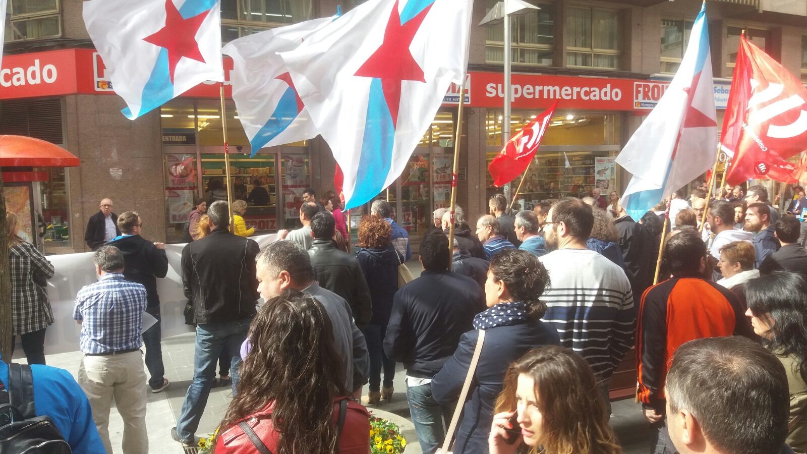 É por iso que a central decidiu iniciar mobilizacións diante de establecementos da marca en Pontevedra. Nesta ocasión a protesta tivo lugar no supermercado da rúa Benito Corbal, no cento de cidade, para visibilizar o conflito. Alí, un nutrido grupo de delegados/as da CIG -que previamente participaron nunha asemblea para preparar a conmemoración do Primeiro de Maio- permaneceu de 11.30 a 12.15 horas berrando consignas contra a represión sindical.