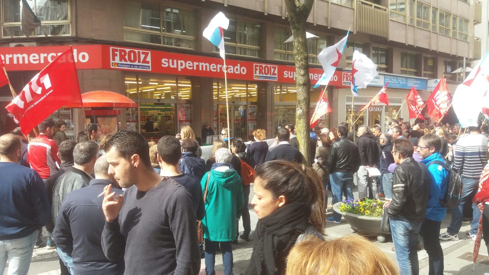 Un nutrido grupo de delegados/as sindicais da CIG desenvolveu hoxe unha concentración diante dun dos establecementos da marca Froiz en Pontevedra para rexeitar a campaña de acoso que a empresa mantén contra unha representante da central no comité de Moldes, cadea de supermercados que foi adquirida por Froiz en 2014.