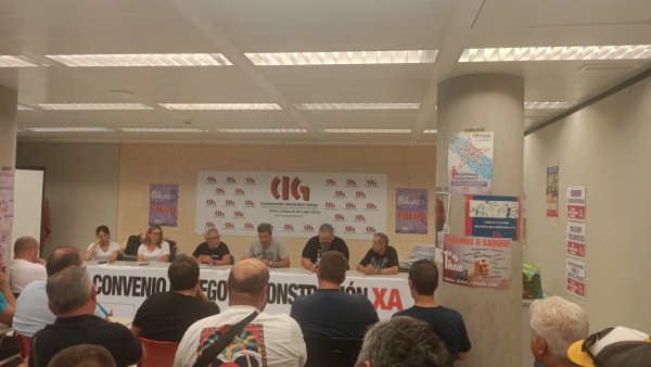Previamente a ocupar as obras da intermodal, os delegados e delegadas procedentes das catro provincias reuníronse en asemblea no local da CIG para analizar as condicións do sector, a falta de resposta da patronal e acordar novas mobilizacións. O secretario nacional da FCM-CIG, Plácido Valencia, explica que o acordo da asemblea foi ir a unha convocatoria de folga no sector despois do verán se o empresariado continúa ignorando máis tempo as súas demandas.