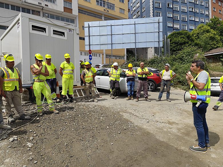 Durante o acto reivindicativo paráronse as dúas obras (adxudicadas a COPASA e San José) e aproveitouse para realizar unha asemblea cos traballadores e traballadoras para explicarlles os motivos da protesta e a necesidade de contar cun convenio galego que dignifique as condicións salariais e laborais “e que non nolas impoñan dende Madrid”. Tamén se abordaron as condicións de traballo que ten o persoal nestas obras e se responderon as dúbidas en materia laboral que formularon algúns dos operarios.